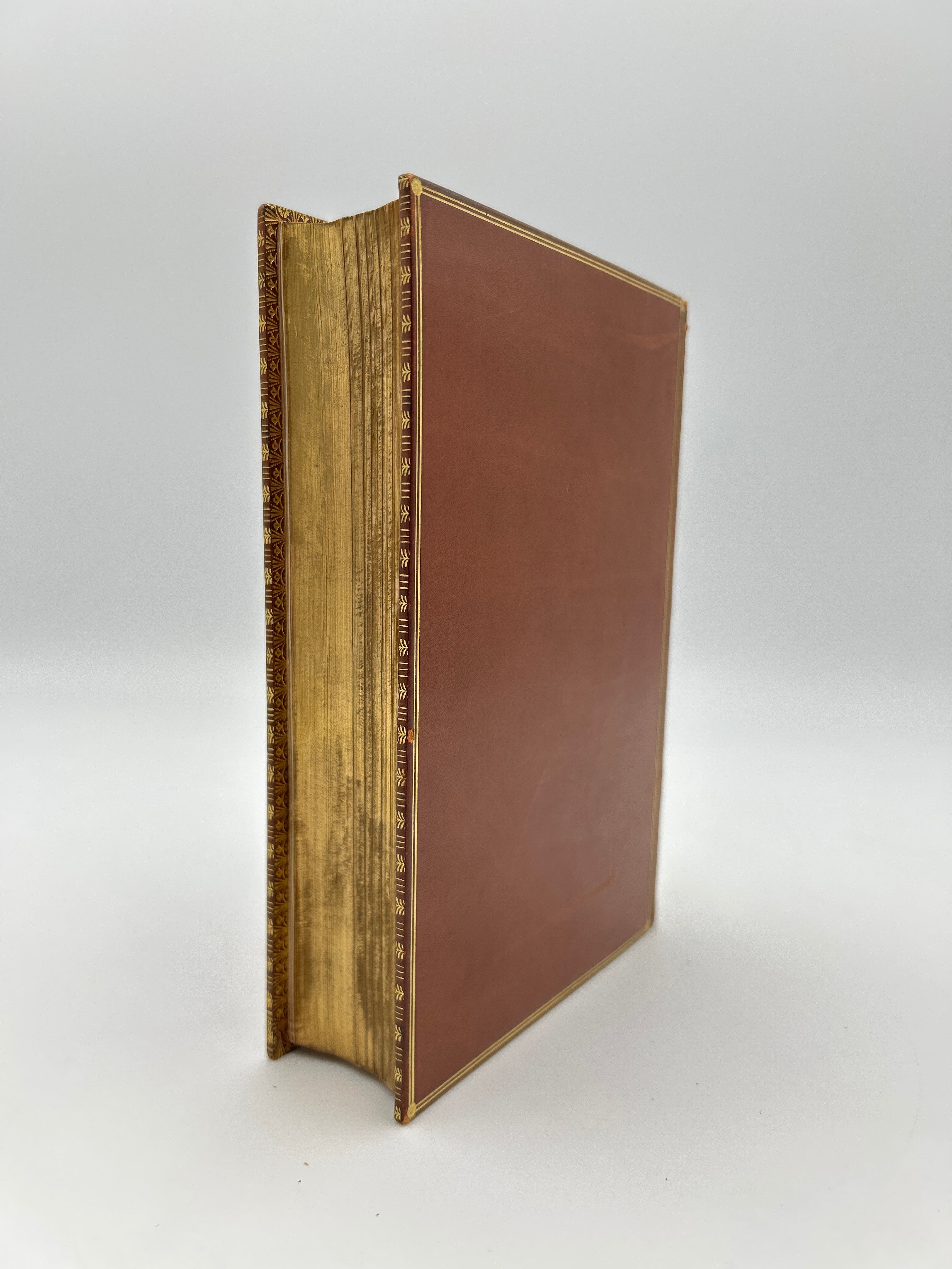 Brown polished calf leather presentation copy, gold embossing on spine, three gilt edges, pristine condition.