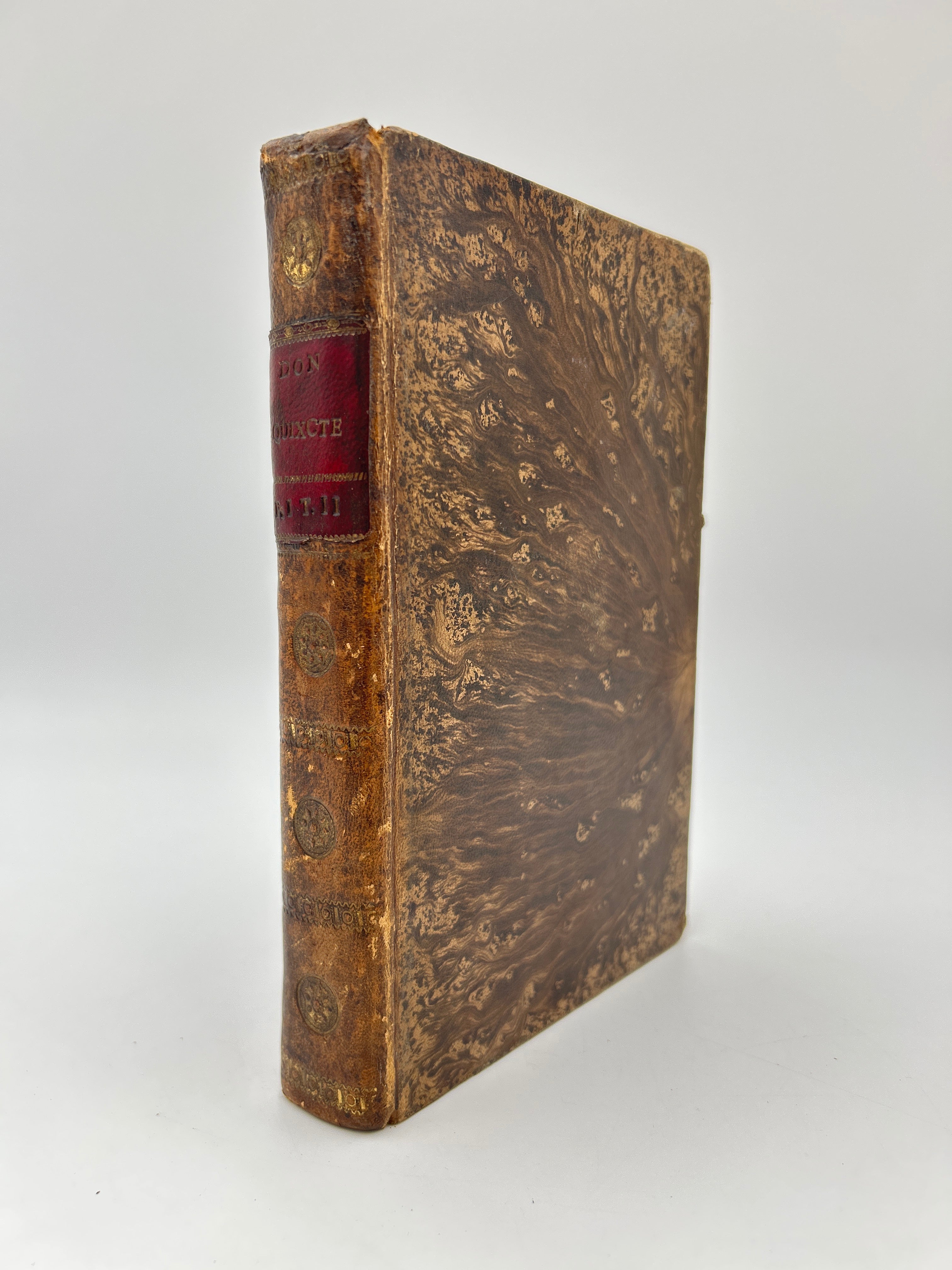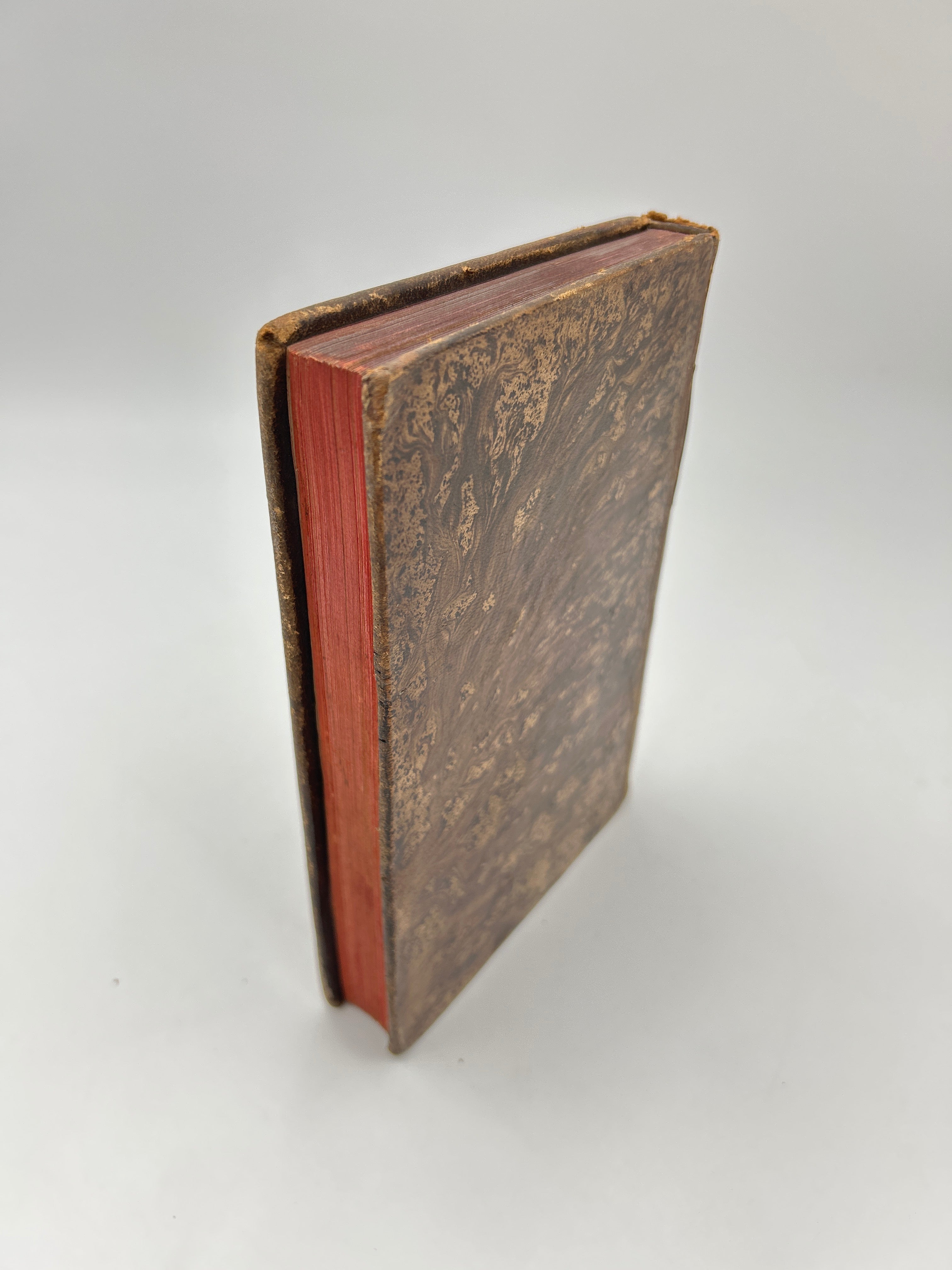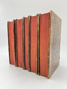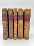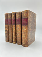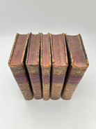 Beautiful five volumes, brown marbled leather, marble end papers, three edges red, burgundy title label on spine, fine condition.