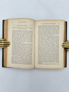 Dark green leather, Gold embellished spines, illustrated frontispiece, fading on front cover, intact, overall good condition.