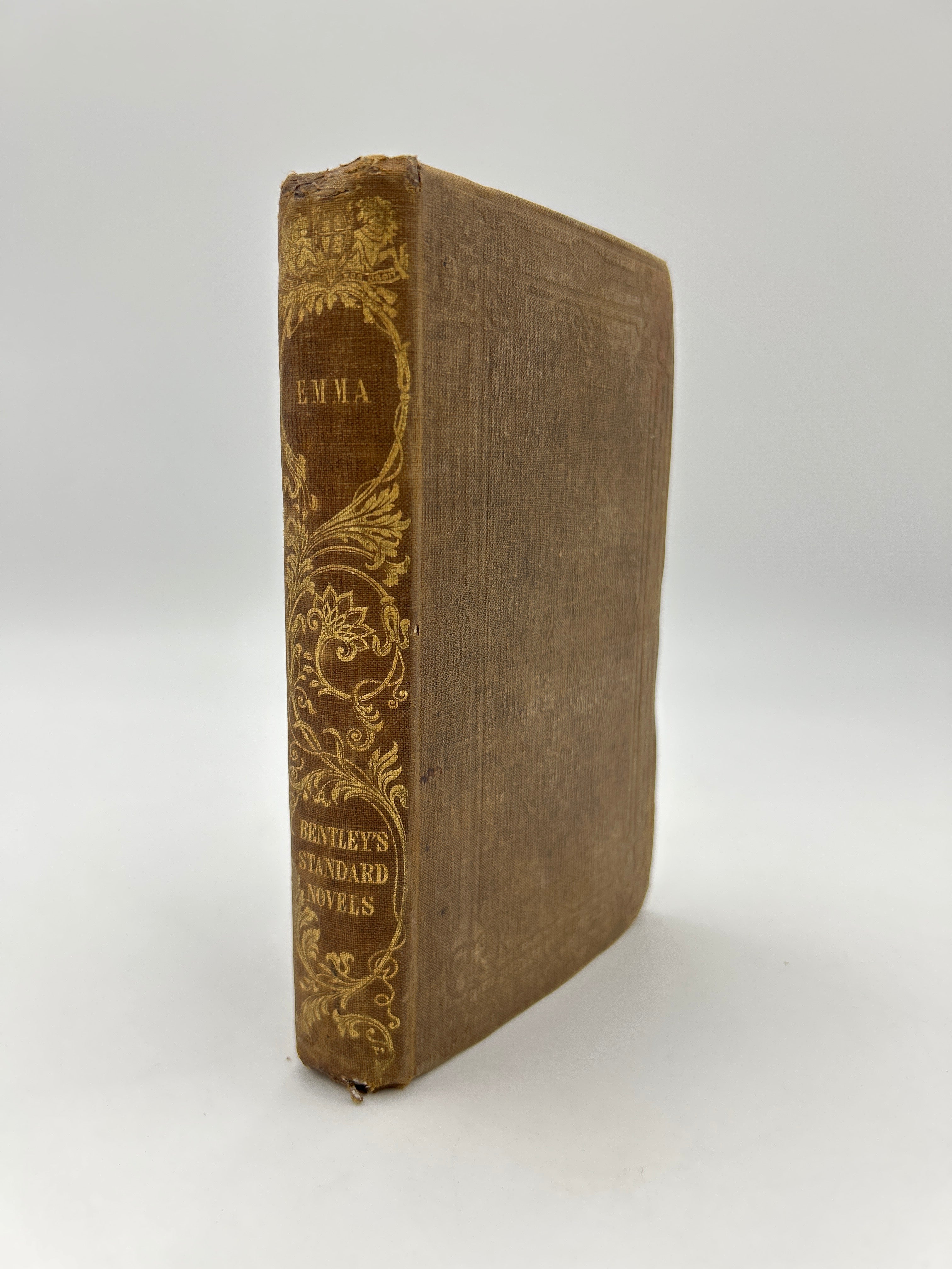 Brown cloth with embossing, gold embossing and lettering on spine, four corners bent, slight cocking, good condition.