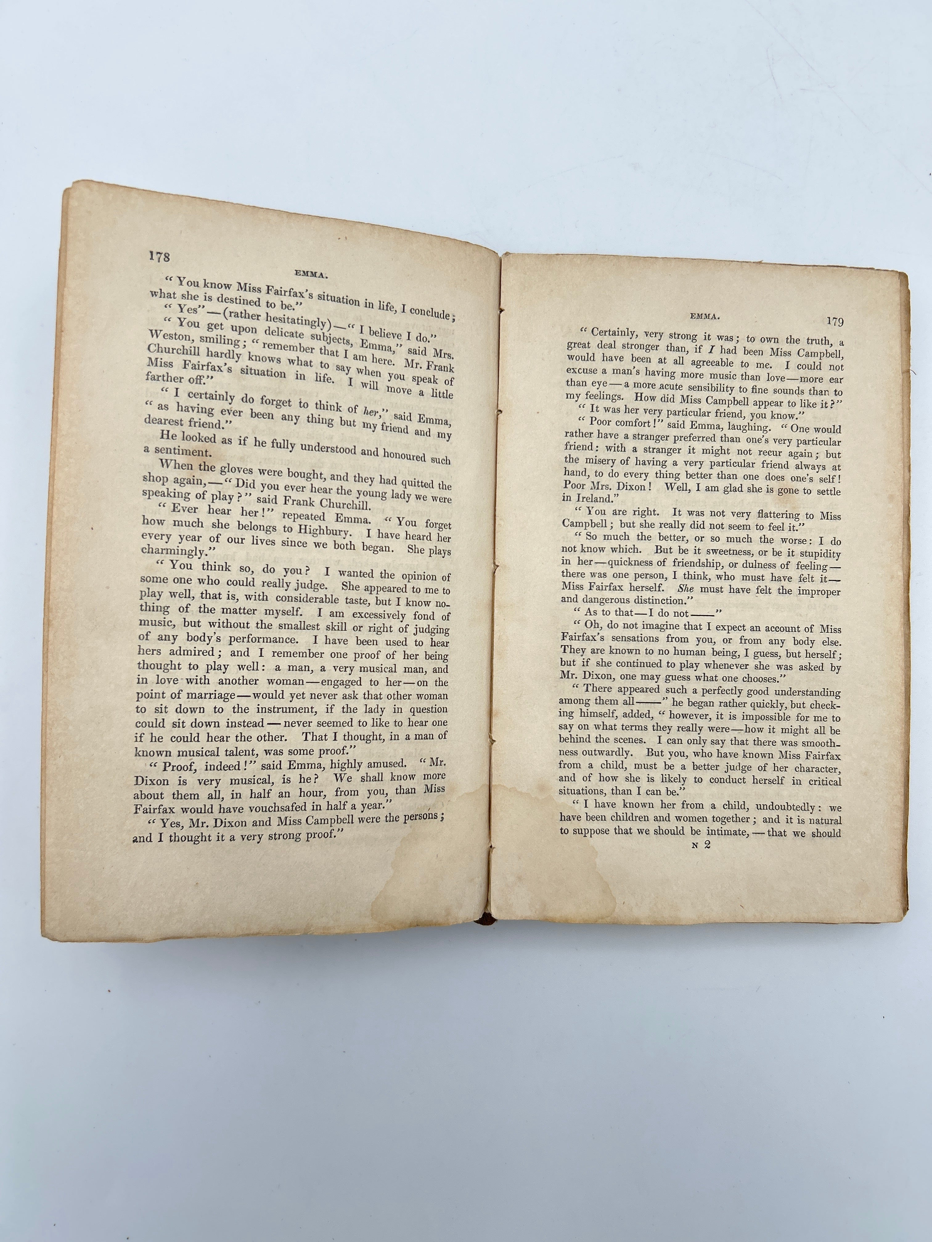 "Emma" is a novel written by Jane Austen and published in 1815. It is a classic work of English literature that explores themes of love, matchmaking, and social class in early 19th-century England. The story revolves around the title character, Emma Woodhouse, a young and wealthy woman who takes it upon herself to play matchmaker for her friends and acquaintances. However, her well-intentioned efforts often lead to misunderstandings and romantic complications.