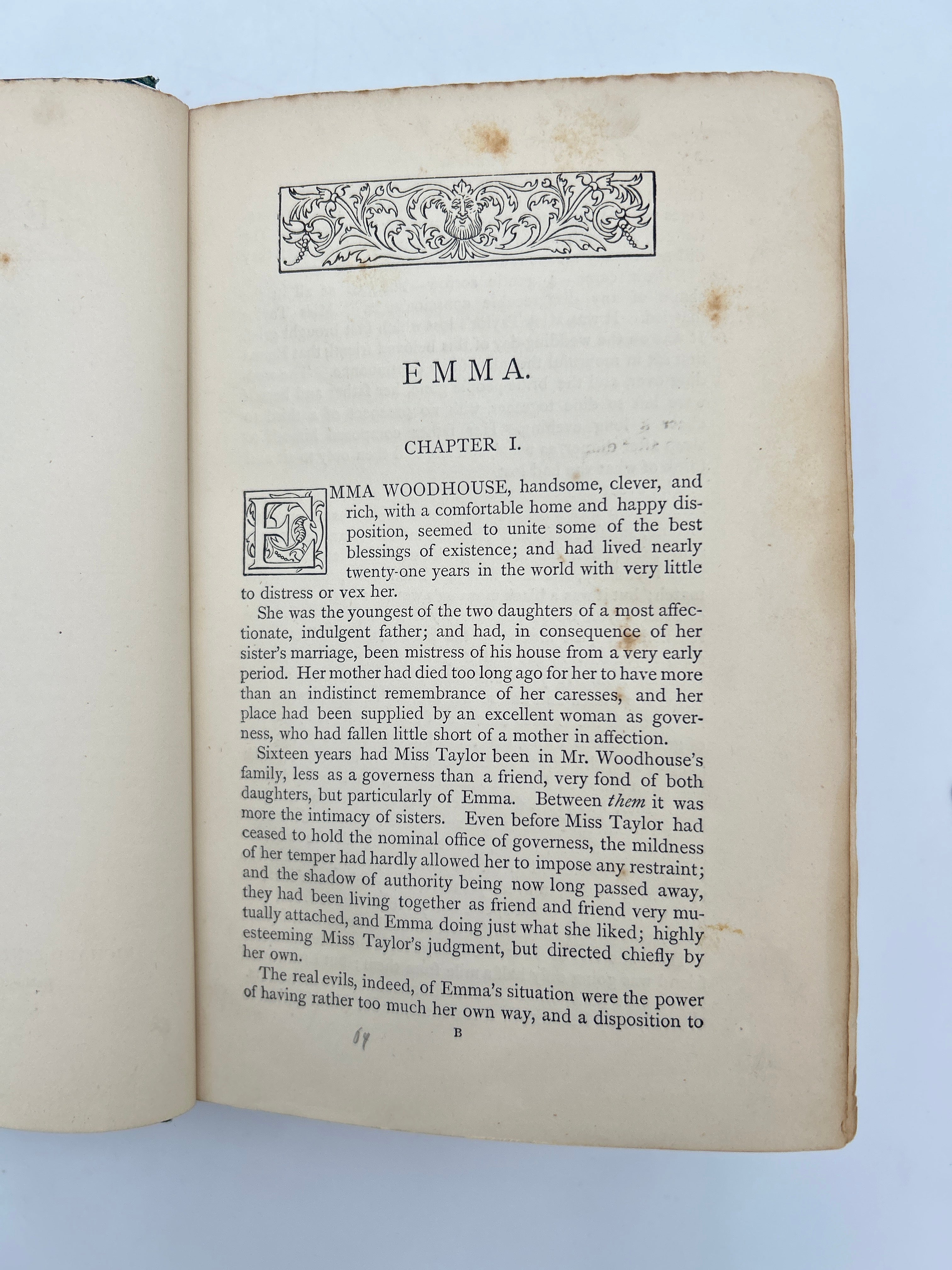 "Emma" is a novel written by Jane Austen and published in 1815. It is a classic work of English literature that explores themes of love, matchmaking, and social class in early 19th-century England. The story revolves around the title character, Emma Woodhouse, a young and wealthy woman who takes it upon herself to play matchmaker for her friends and acquaintances. However, her well-intentioned efforts often lead to misunderstandings and romantic complications.