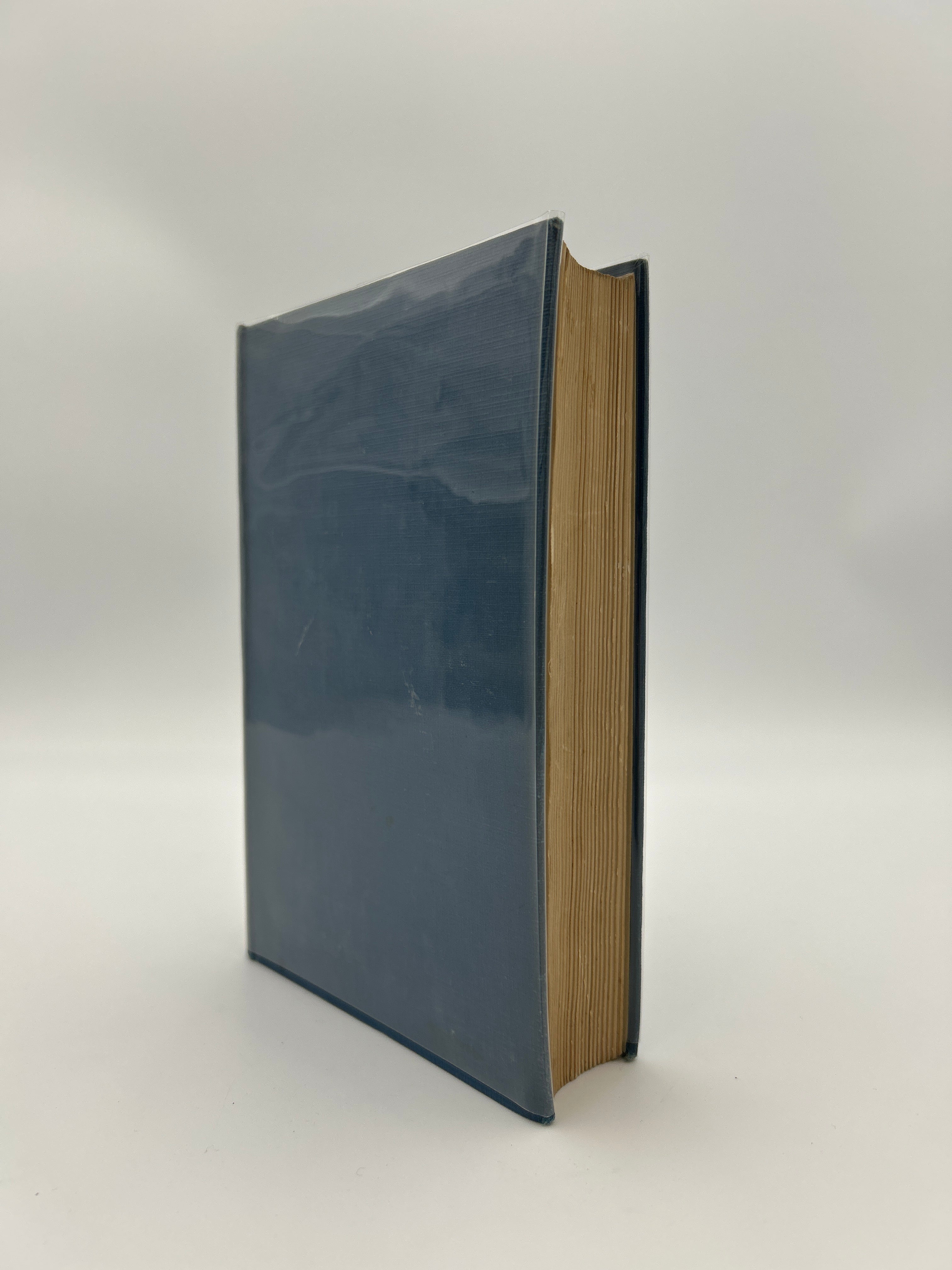 Blue cloth cover with clear sleeve, gold lettering on spine, clear dust jacket, good condition.
