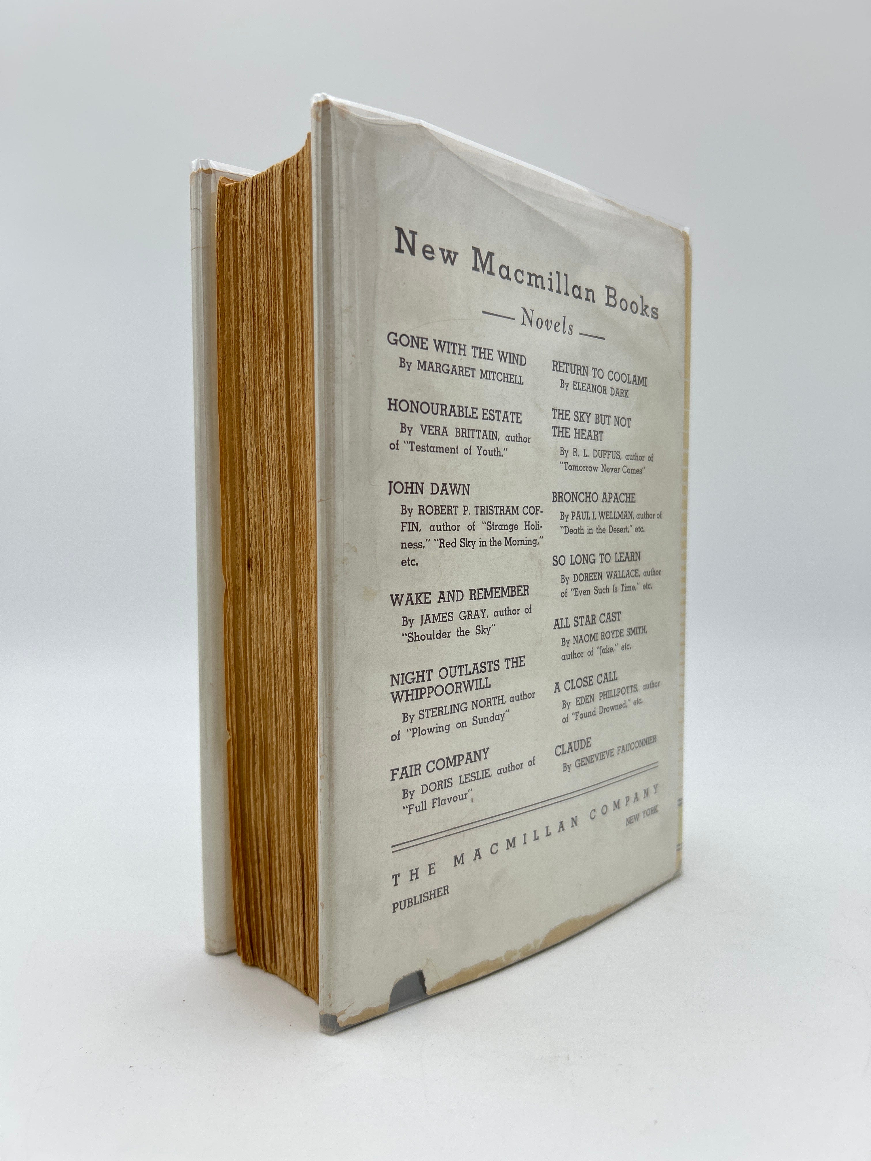 Gray canvas binding with navy lettering on upper board and spine. Original second state pictorial dust jacket. Some chipping along the edges and corners of the dust jacket. Some scuffing to the boards, bumping to the corners, and creasing/wear to upper and lower spine.