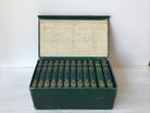 12 vol. Green cloth with gold embossing pocket sized set in a green cloth box, Fair condition with some weathering on the box edges and scratching on the top of box with title, green cloth with gold embossing pocket sized set in a green cloth box, excellent condition with some fading on the spines.