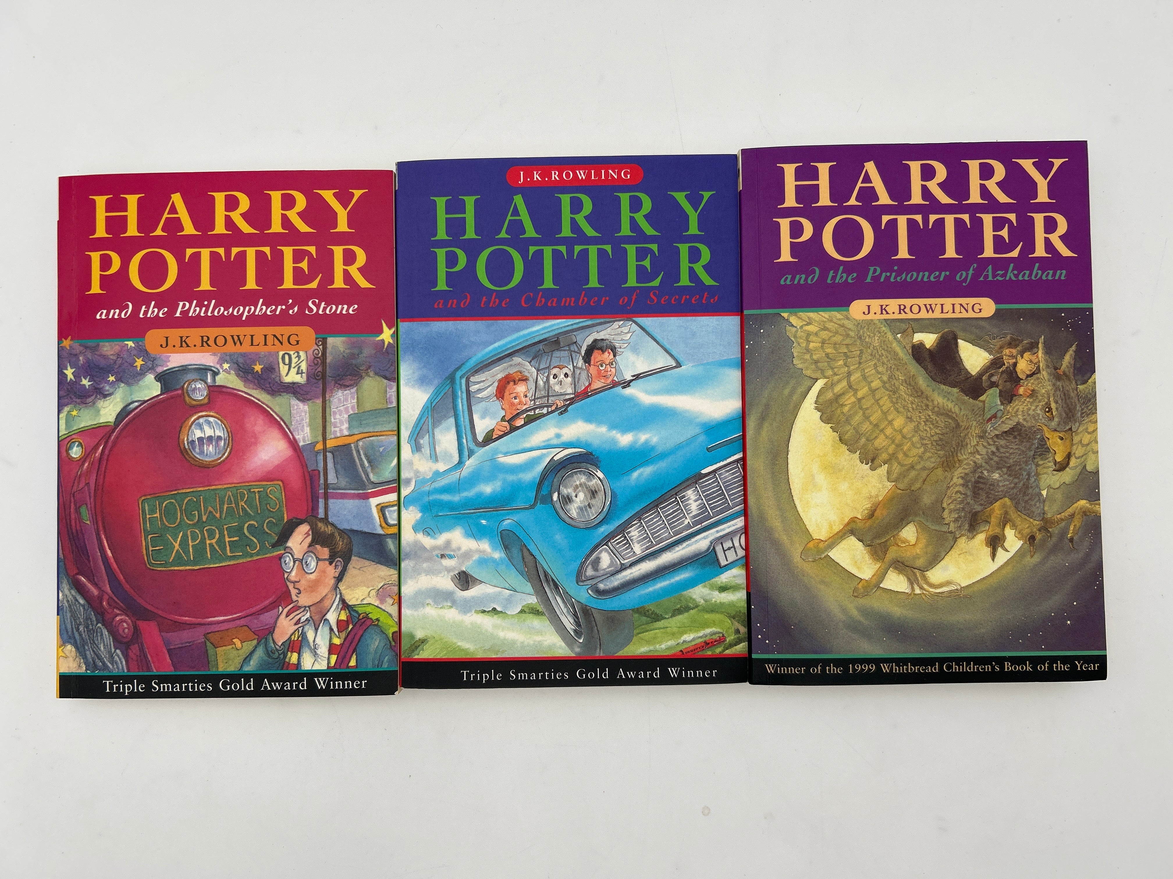 5b, J.K. Rowling 1997 Paper back later printing to include: Harry Potter and the Philosopher's Stone, Harry potter and the Chamber of Secrets, Harry Potter and the Prisoner of Azkaban.