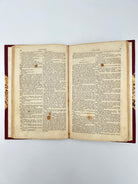 Marbled boards with three quarter red leather modern rebinding. Five raised bands with gilt lettering and black label in the second compartment. Some closed tears to fore edge throughout. General foxing as well. Fine condition overall.
