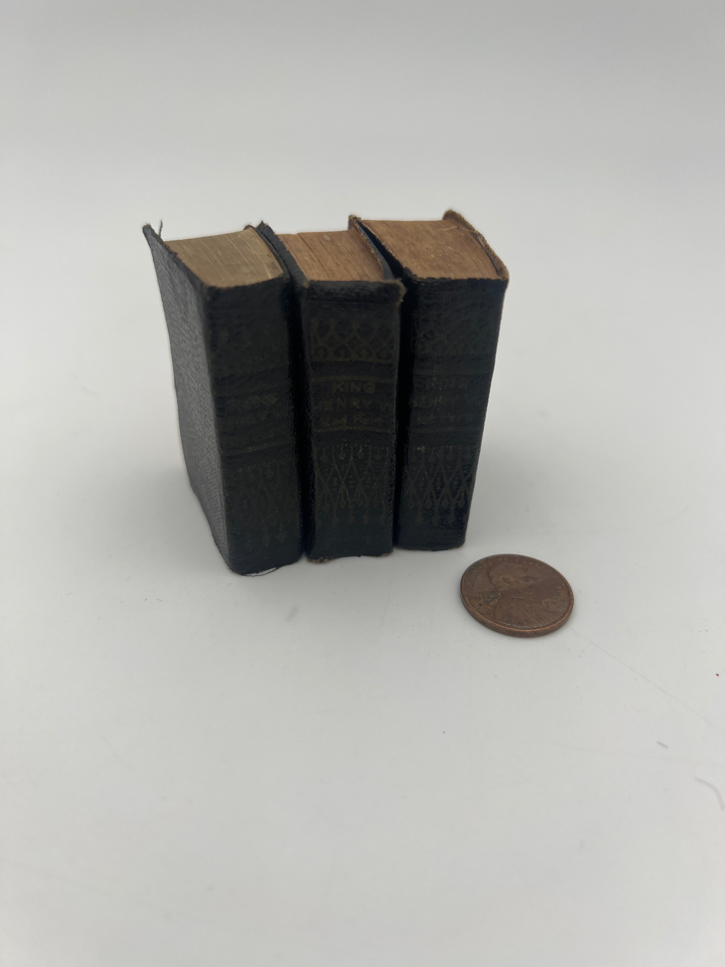 Mini black bound books, Historical Play, good condition.