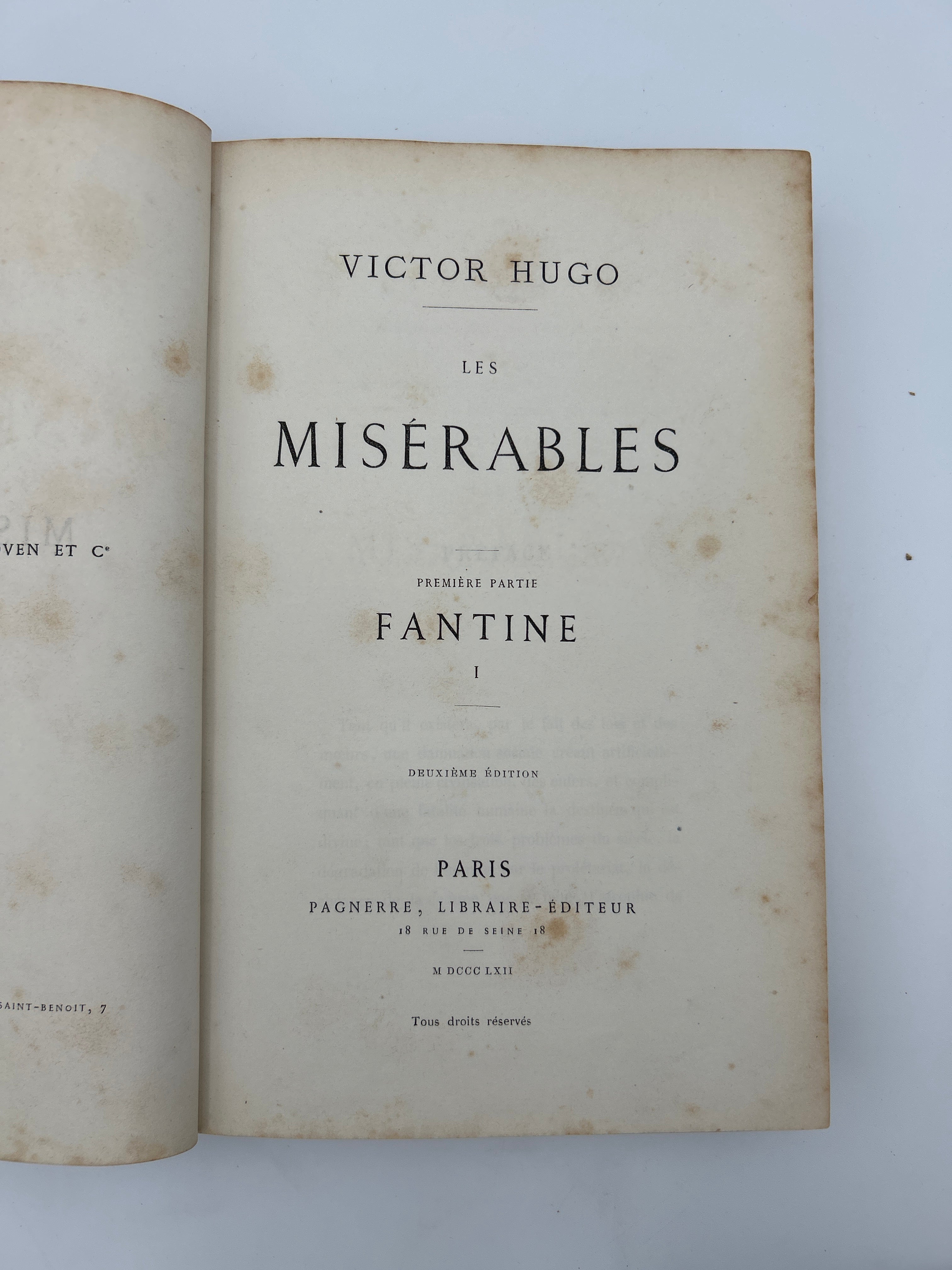 5b. First Edition later printing. Victor Hugo In French. 1862