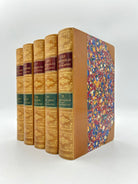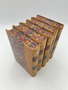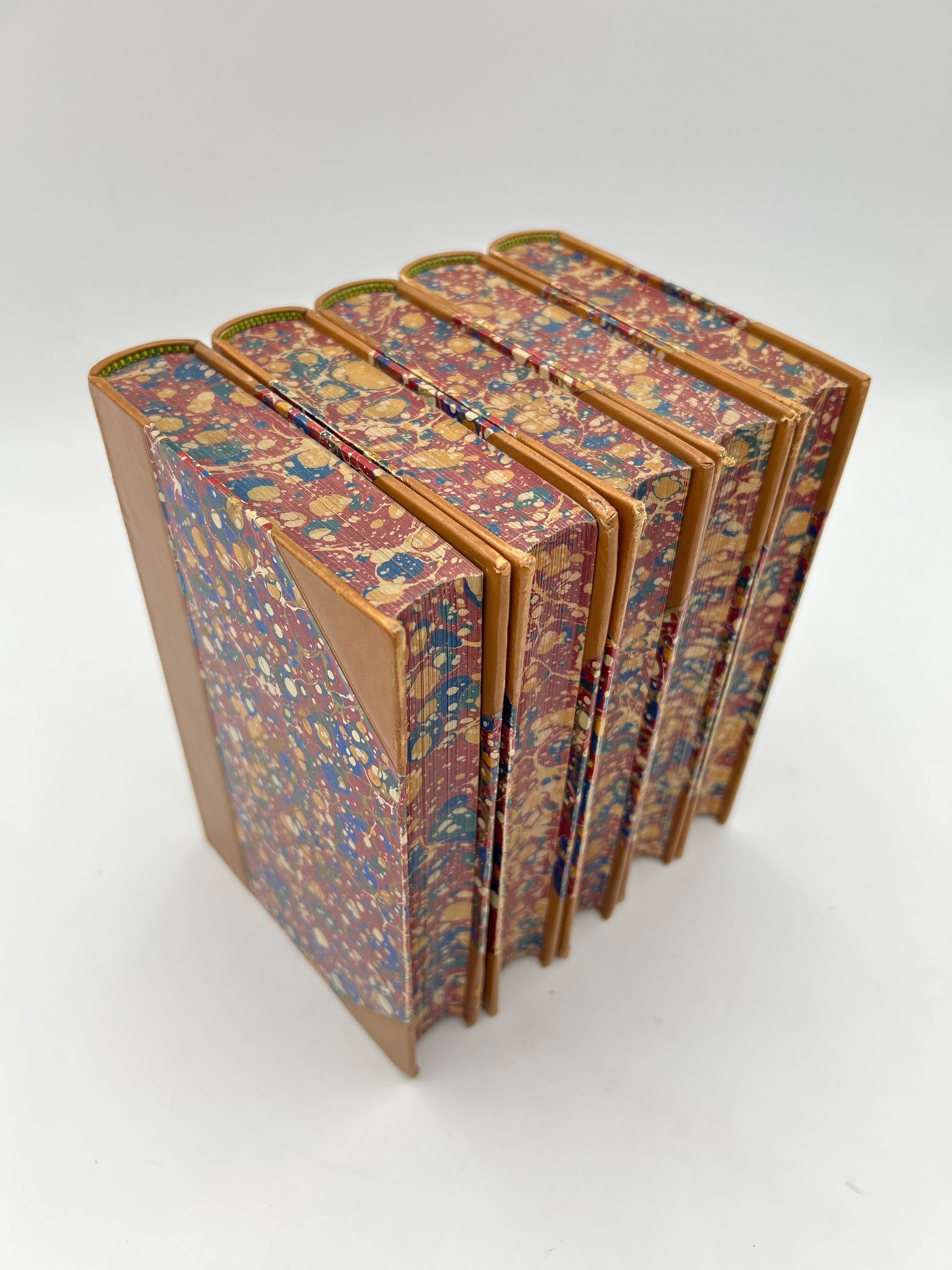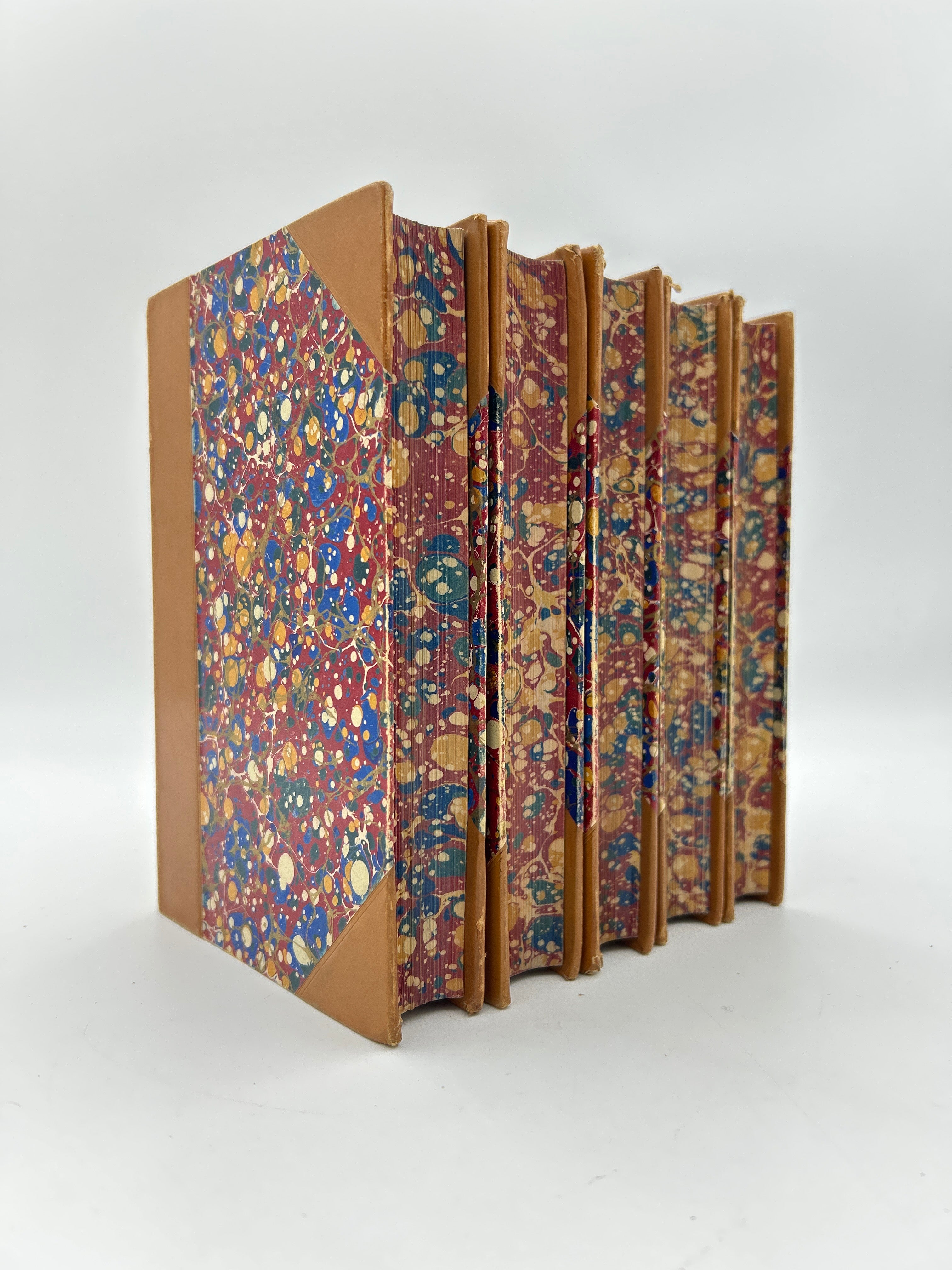 3/4 half tan calf binding with marble, marble end papers, three edge marbled edges, very fine clean set.