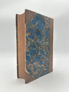 Dark brown 3/4 leather with marbled front, gold lettering on binding, burgundy label, five raised bands with gold lettering.