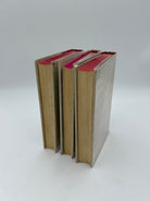 Trilogy set in a box, First edition, later impressions (13,9,10), red hardback with dust jackets, dust jackets discolored but complete with original dust jacket and clear cover, box is torn on top front, title on front of box, overall good condition.