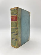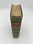 3/4 green textured leather, five raised bands, burgundy title label on spine, some splitting on upper spine, otherwise intact, good condition
