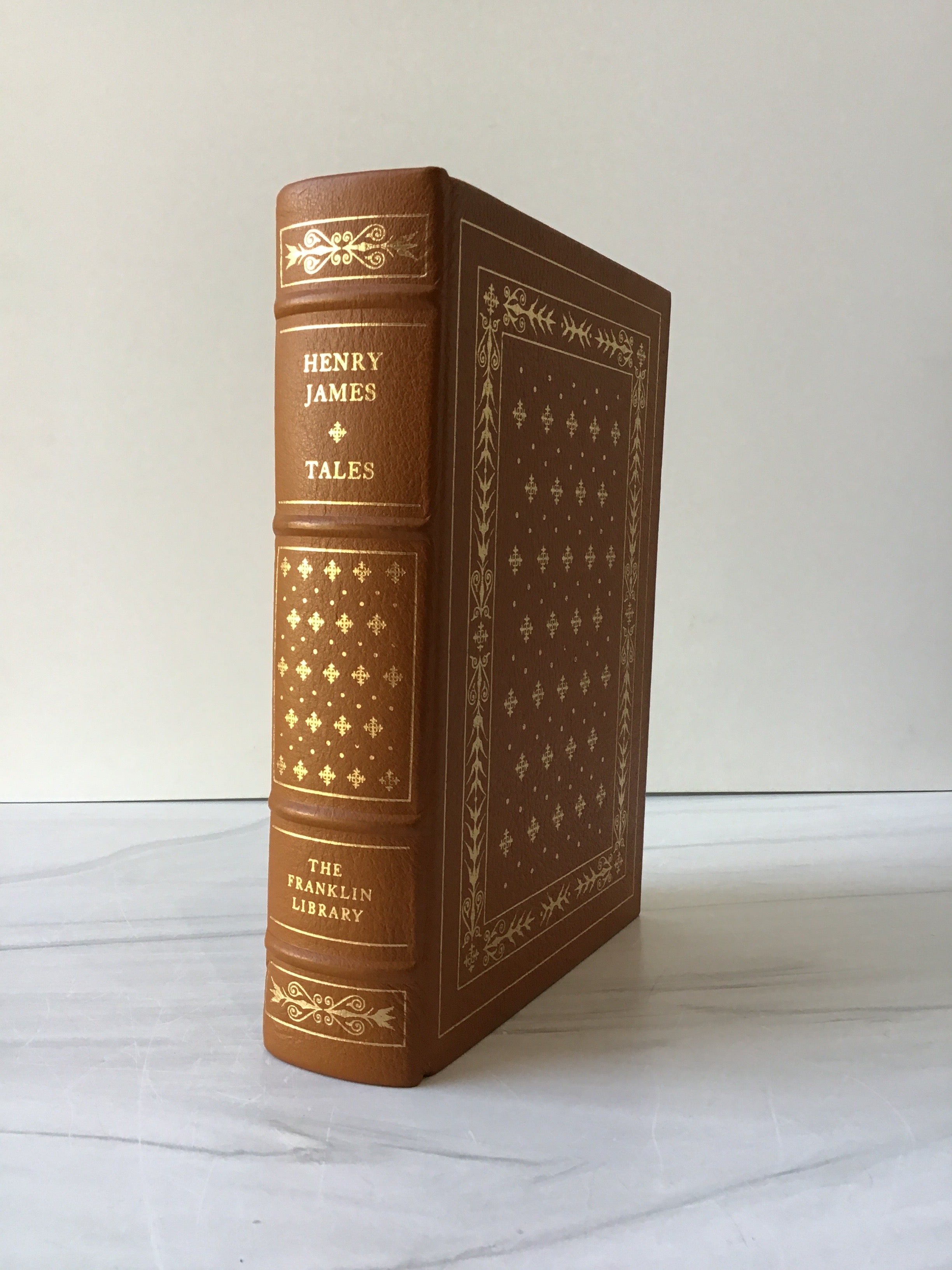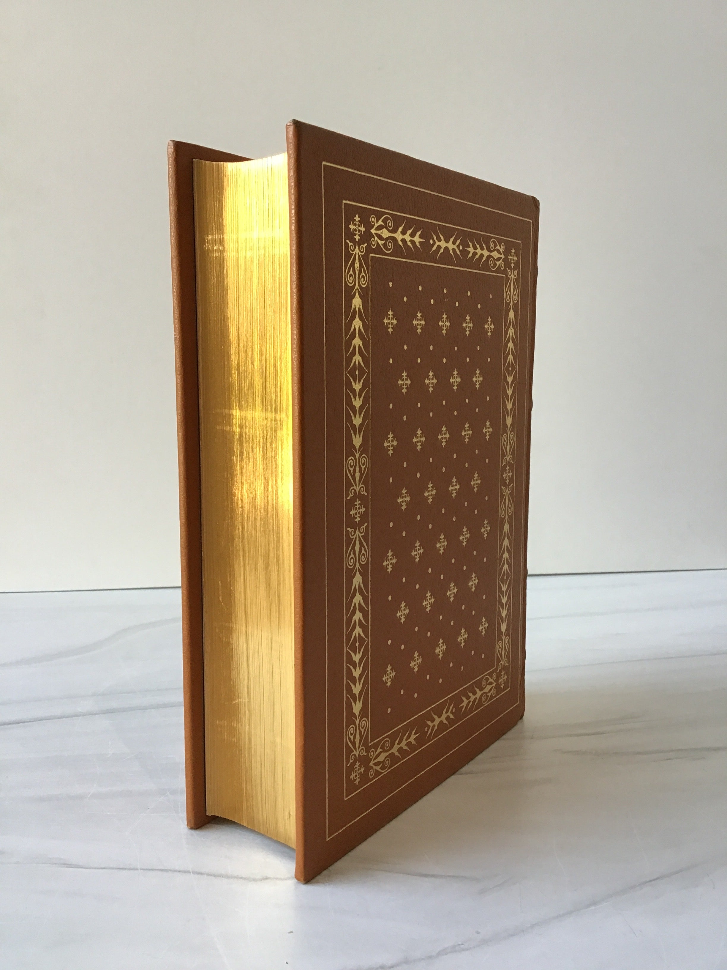 camel leather hardback edition with gold embossed detailing on front and back cover and spine with gold lettering on spine, gold fore edge, four raised bands, and gray silk bookmark. Pristine Franklin Library edition with illustrations throughout.