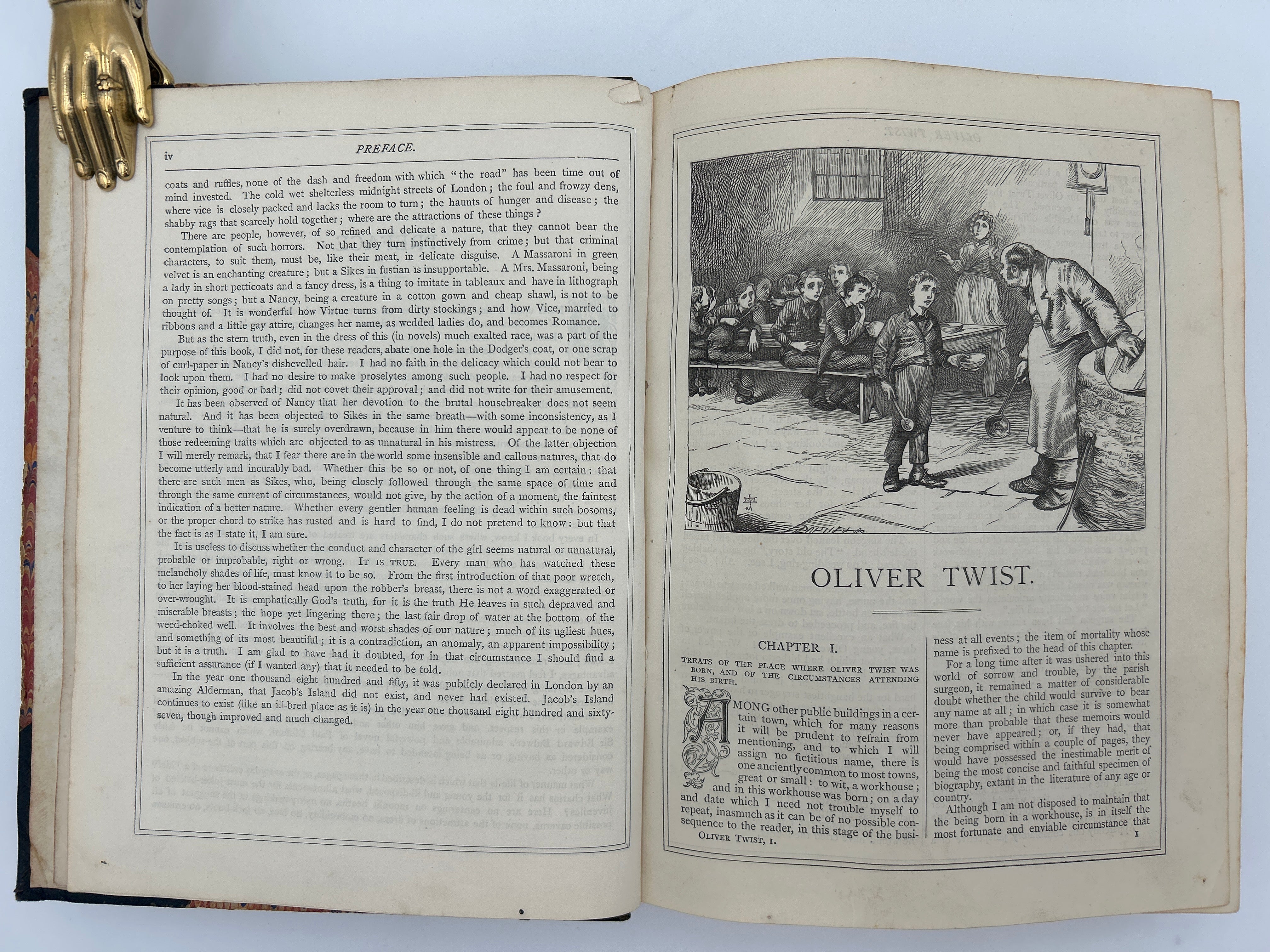 3/4 black leather binding marble front, fading on marbeling, intact, good condition