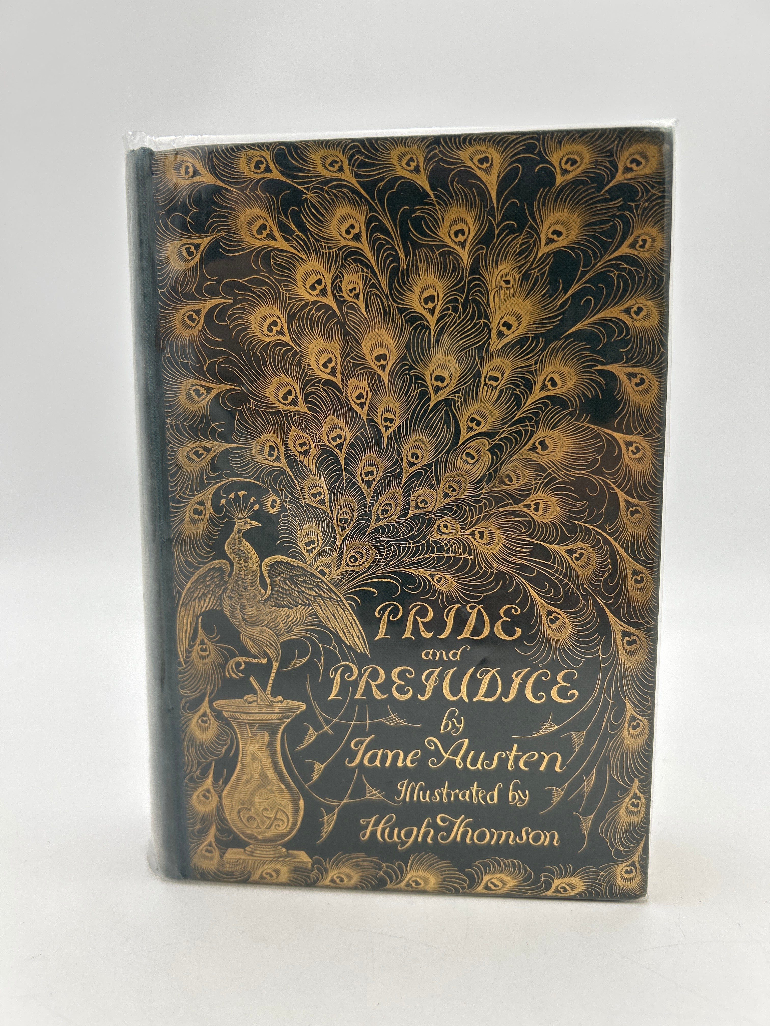 Beautiful 1894 peacock edition with art by Hugh Thomson, three edge gold, intact, slight cocking, clear dust jacket, very fine condition.