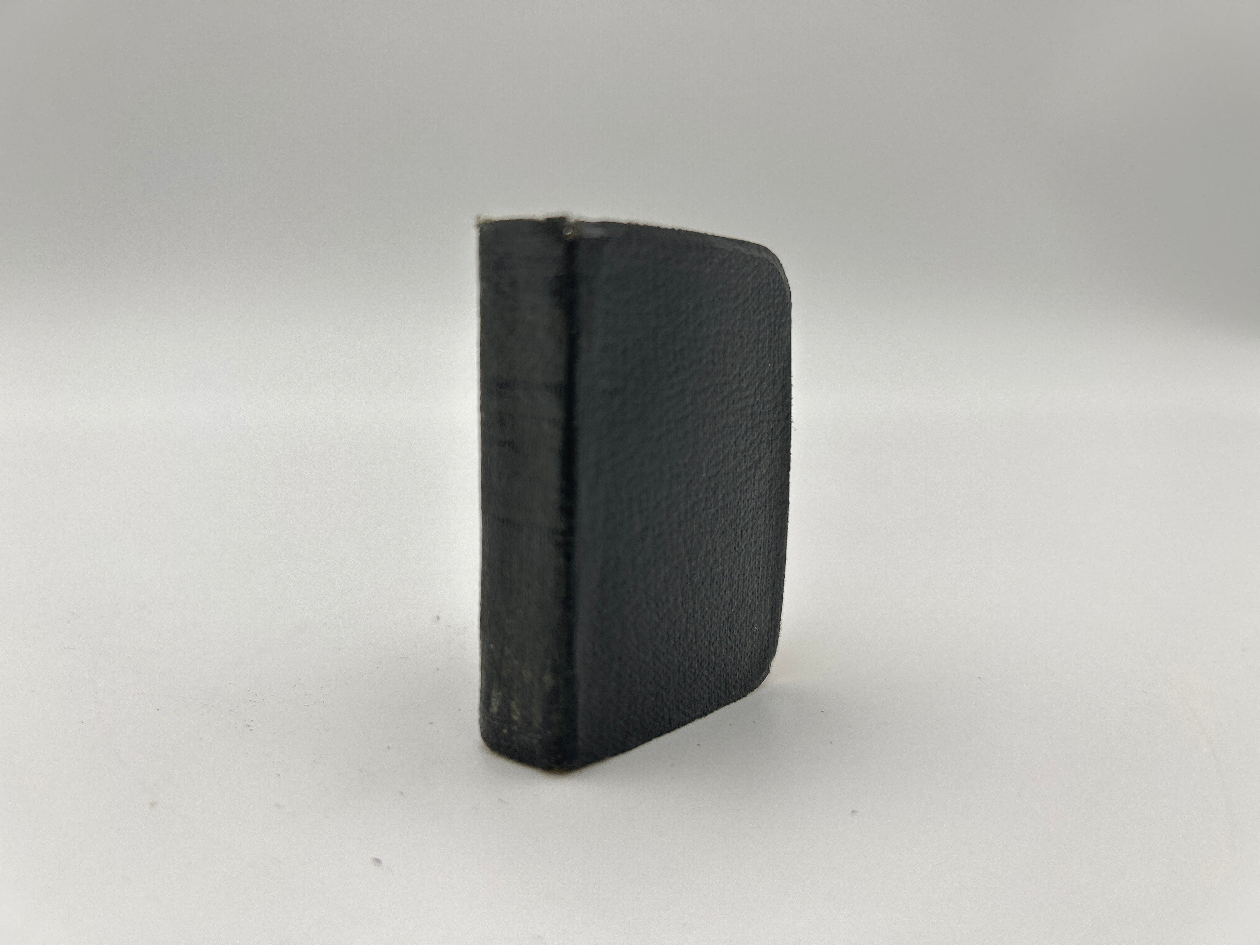 Mini black bound book, written about 1595, fully intact, very good condition.