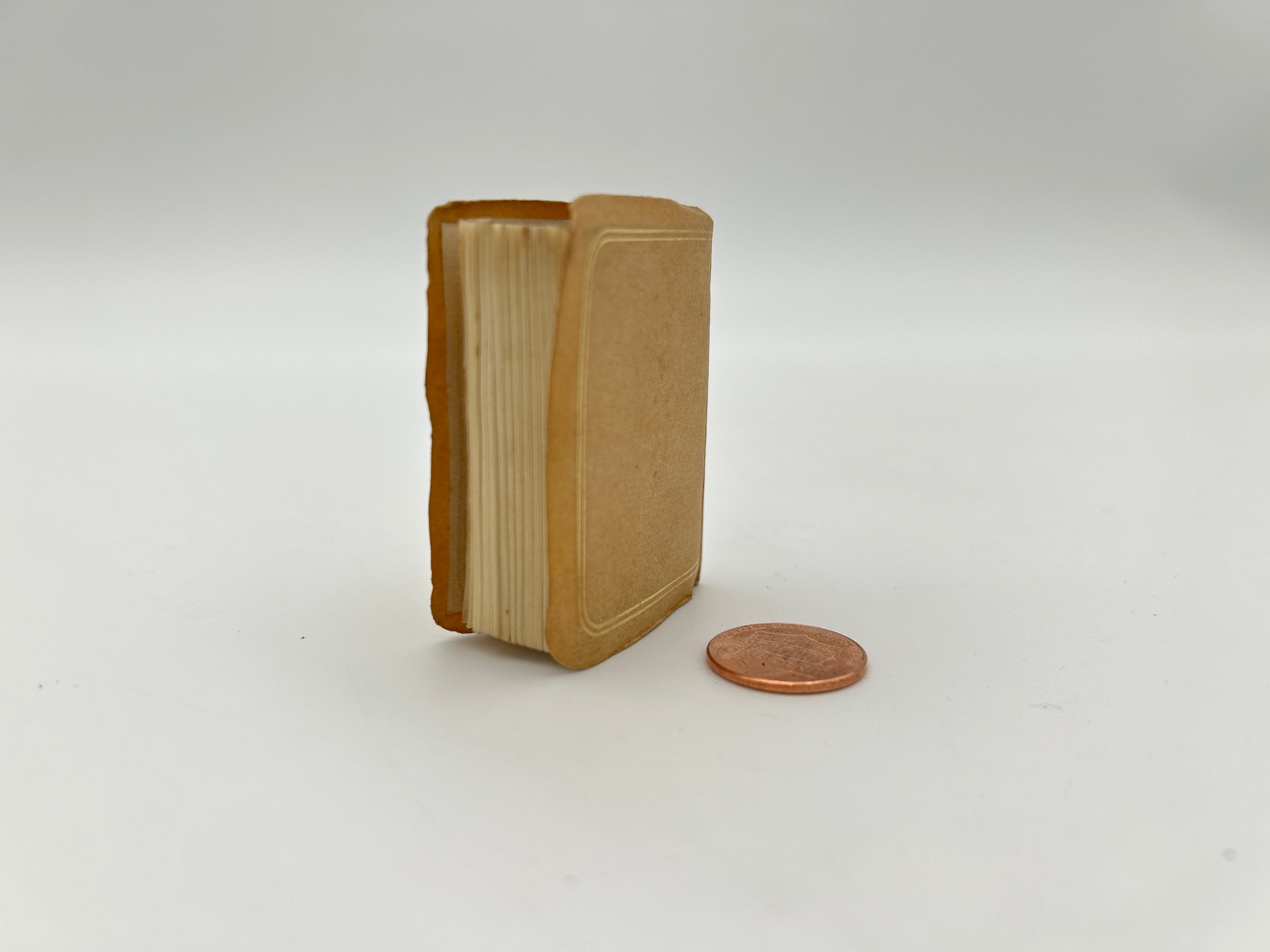 Mini camel book with gilt floral design on the front cover and gilt lettering on the spine. Very good condition.