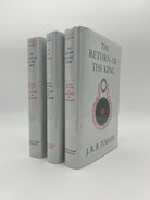 Bound in matching red cloth with gilt titles on the spine,all three volumes are in great condition with some slight fading and wear to the spine top and bottom edges of the first book; edges on other books are near pristine. Pages are clean and free of marks, with fold-out maps of Middle-earth intact at the rear of each book. Set includes facsimile dust jackets. A superb addition to any Tolkien collection, combining the charm of early printings with the classic allure of Tolkien’s epic.