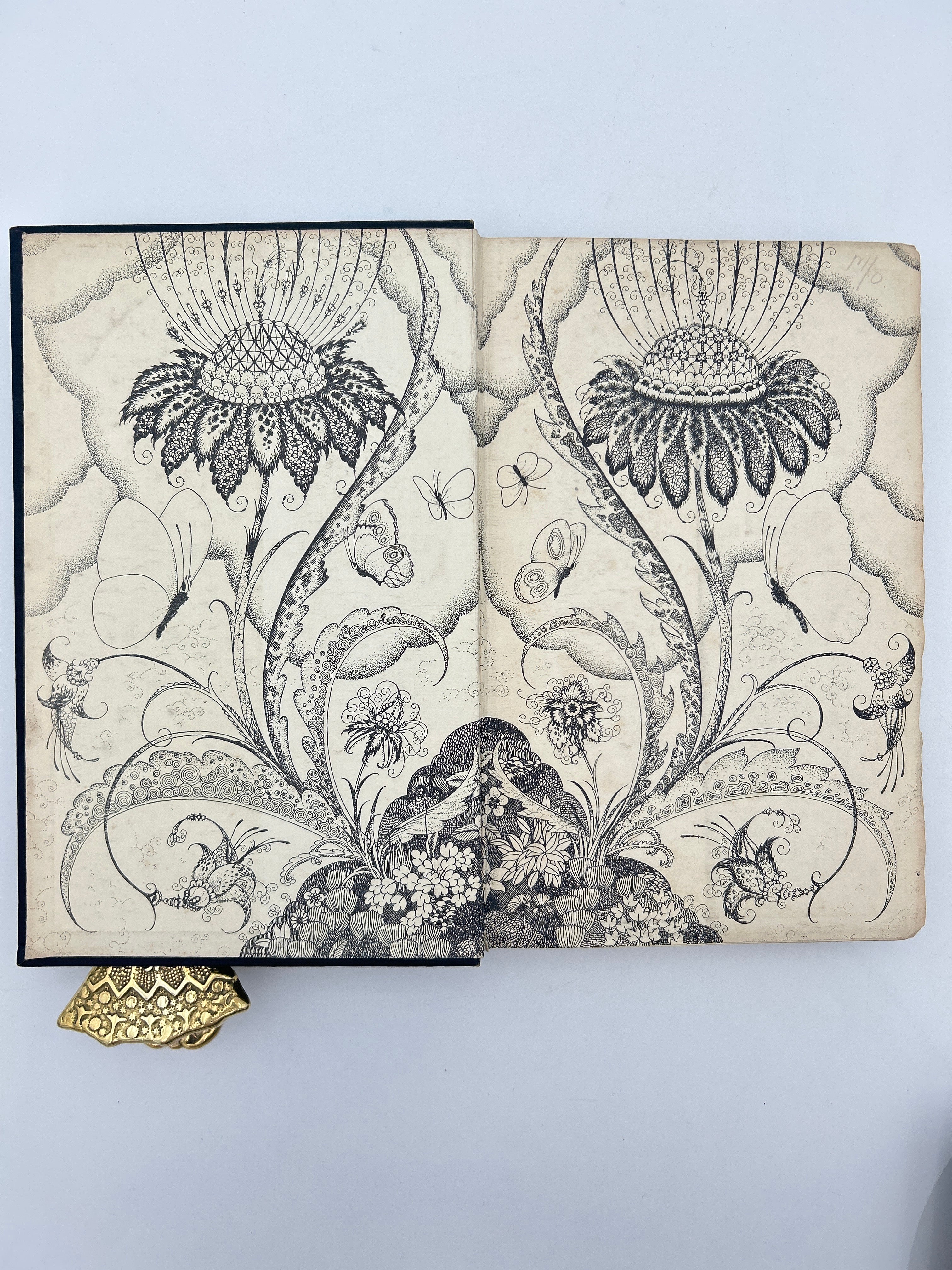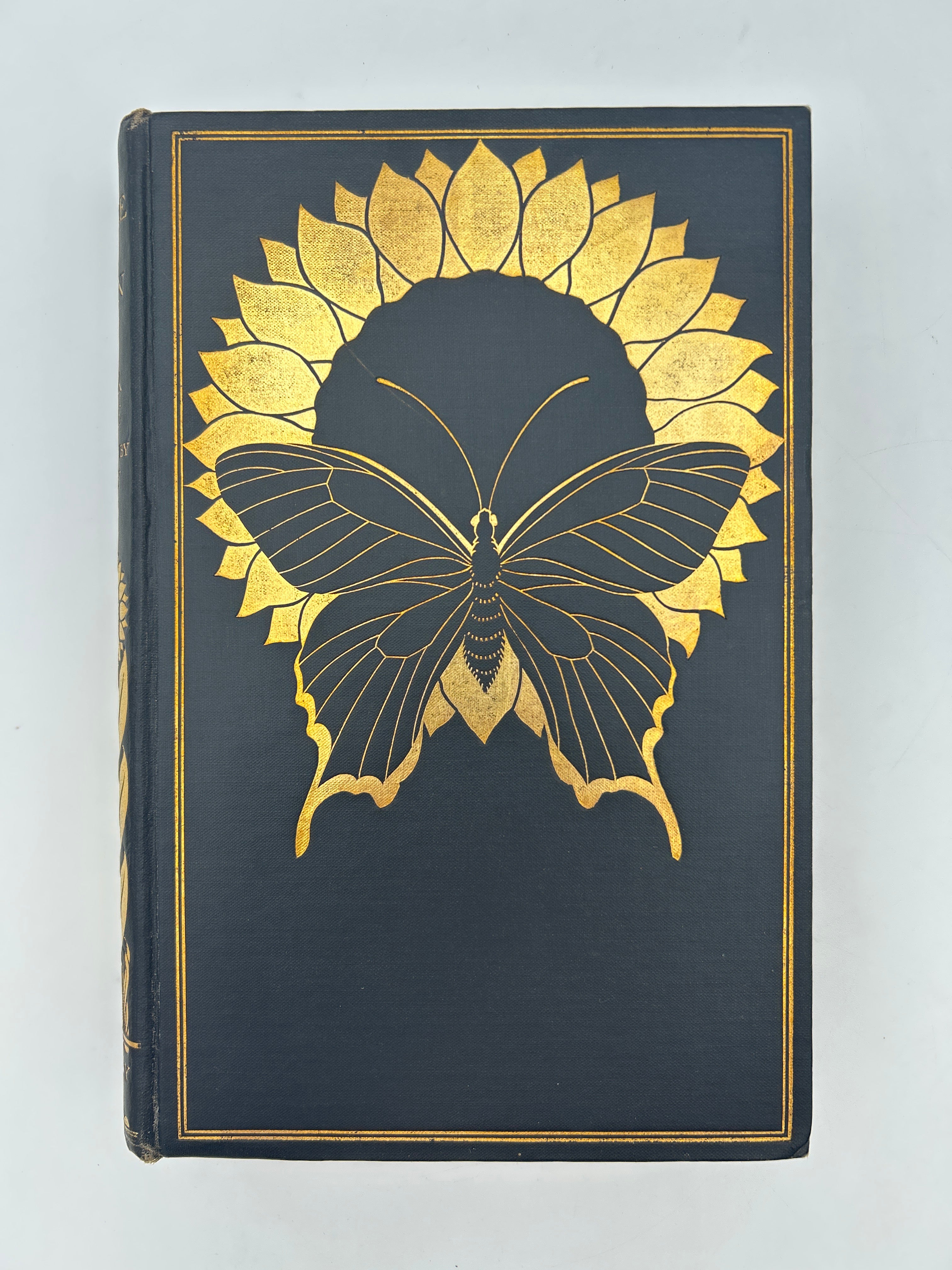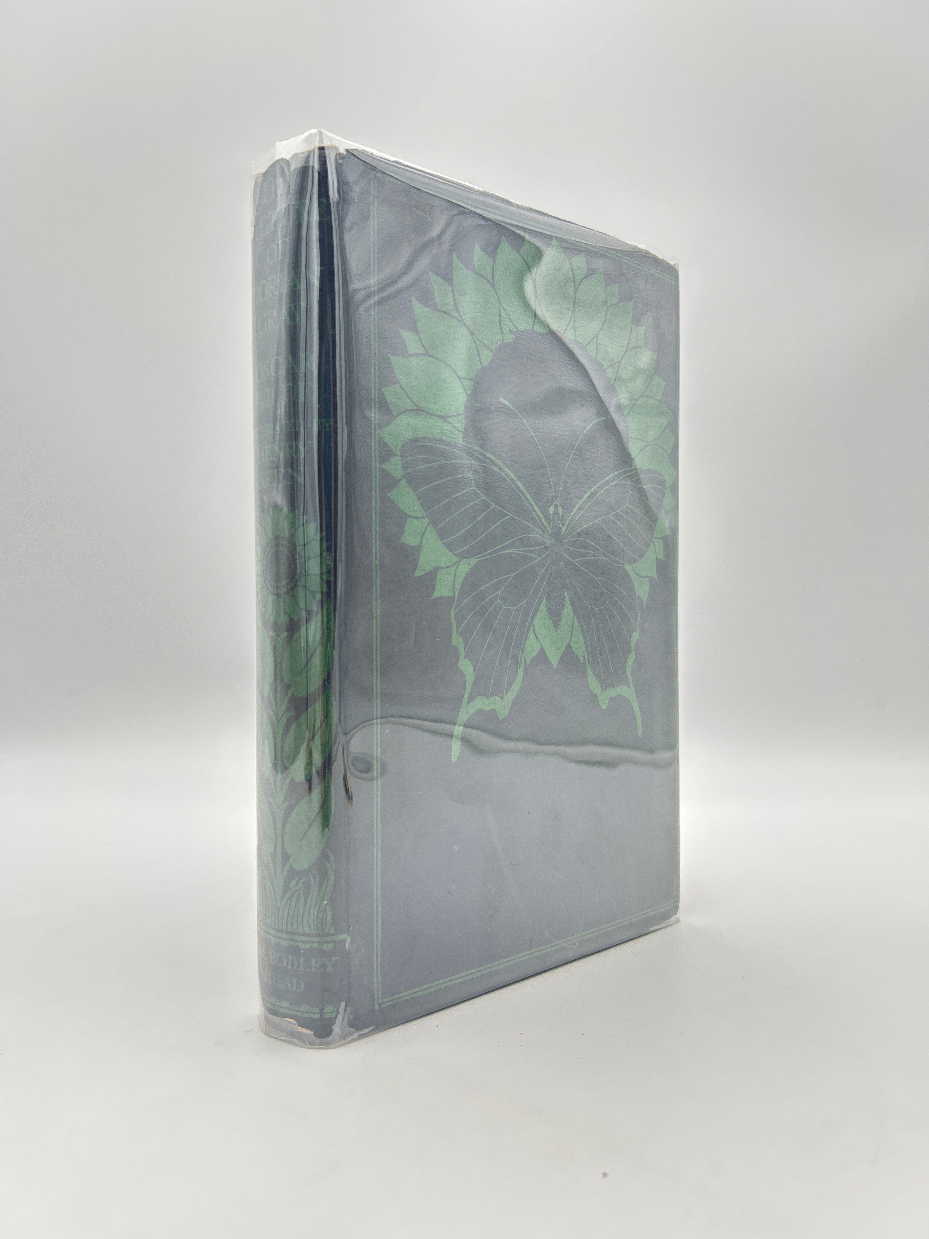 Black cloth binding with butterfly and flower gilt illustration on the upper board. Sunflower and lettering also in gilt along the spine. Original mirror dust jacket with green illustrations and lettering on black paper. Lovely floral endpapers. Gilt top edge and deckled fore edge and bottom edge. Softening to the head and foot of the spine and some chipping to the dust jacket along the spine. Green ink inscription to the half title reading “M.W. You asked for this book… O.B.1934” likely being Osbert Burdett who wrote the introduction. Very find condition overall.