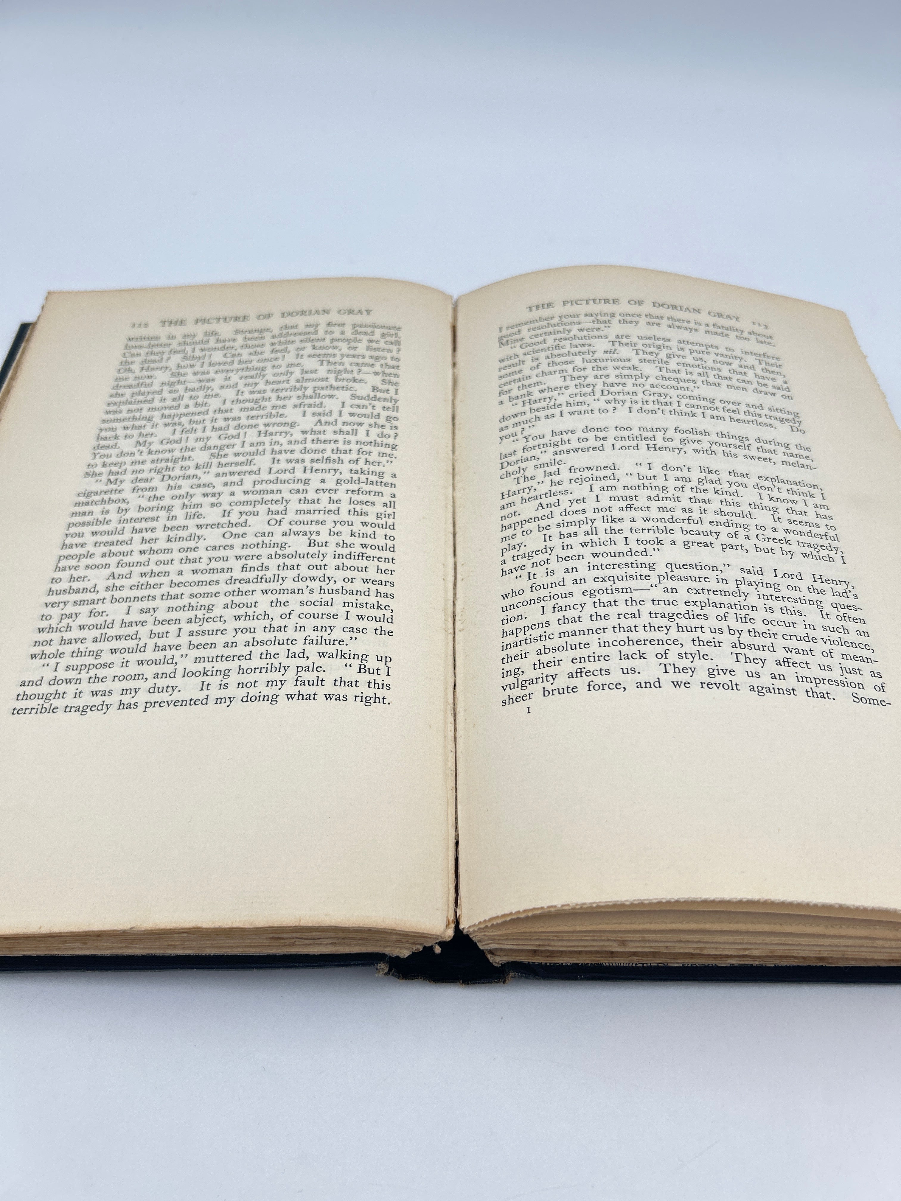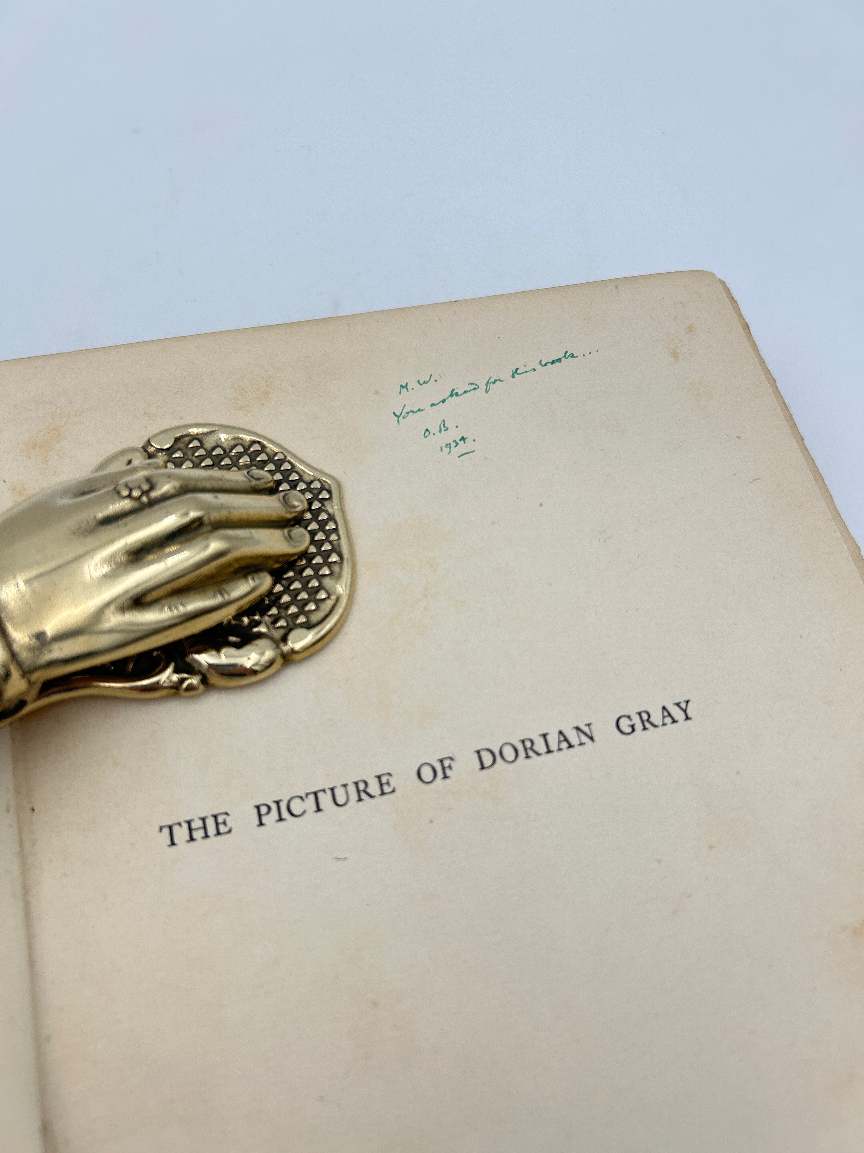 Osbert Burdett, who signs the half-title page, was a British author and art critic, best known for his scholarly works on 19th-century art and literature.He is particularly noted for his 1925 book The Beardsley Period: An Essay in Perspective, which examines the life and influence of the artist Aubrey Beardsley. Burdett's expertise in the aesthetic and decadent movements of the late 19th century made him a fitting choice to write the introduction for this 1925 edition of Oscar Wilde's The Picture of Dorian Gray. His introduction provides valuable context and analysis, enriching the reader's understanding of Wilde's work within the framework of the aesthetic movement.