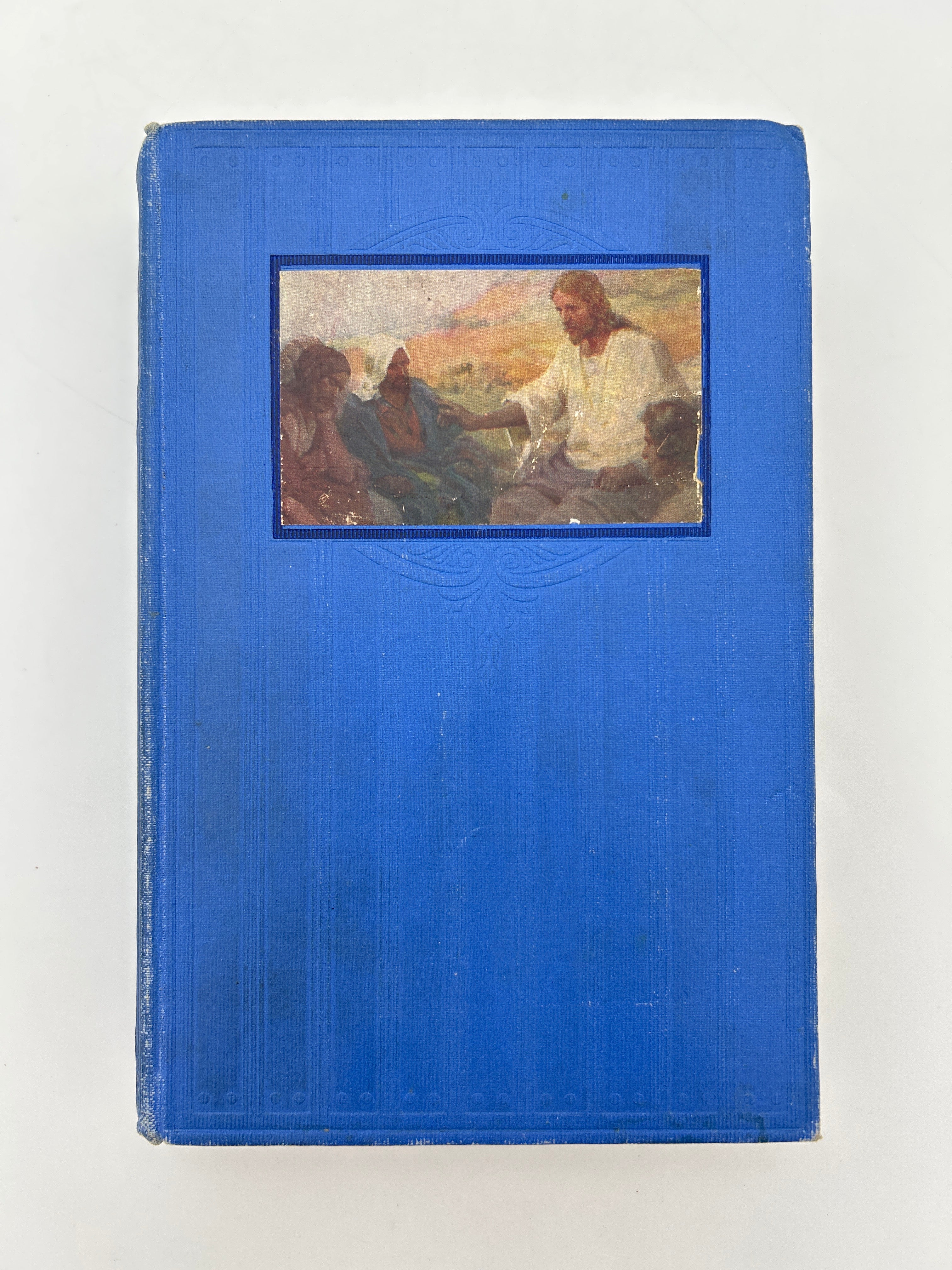 Blue cloth binding with inlaid image of Christ to upper board. Foxing to edges. Inscription to first endpaper dated Christmas 1923. Fine condition.