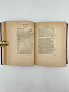 Beautiful burgundy 3/4 leather and fabric, gold tooling on spine, five raised spines, hand cut pages, marble end papers, intact excellent condition.