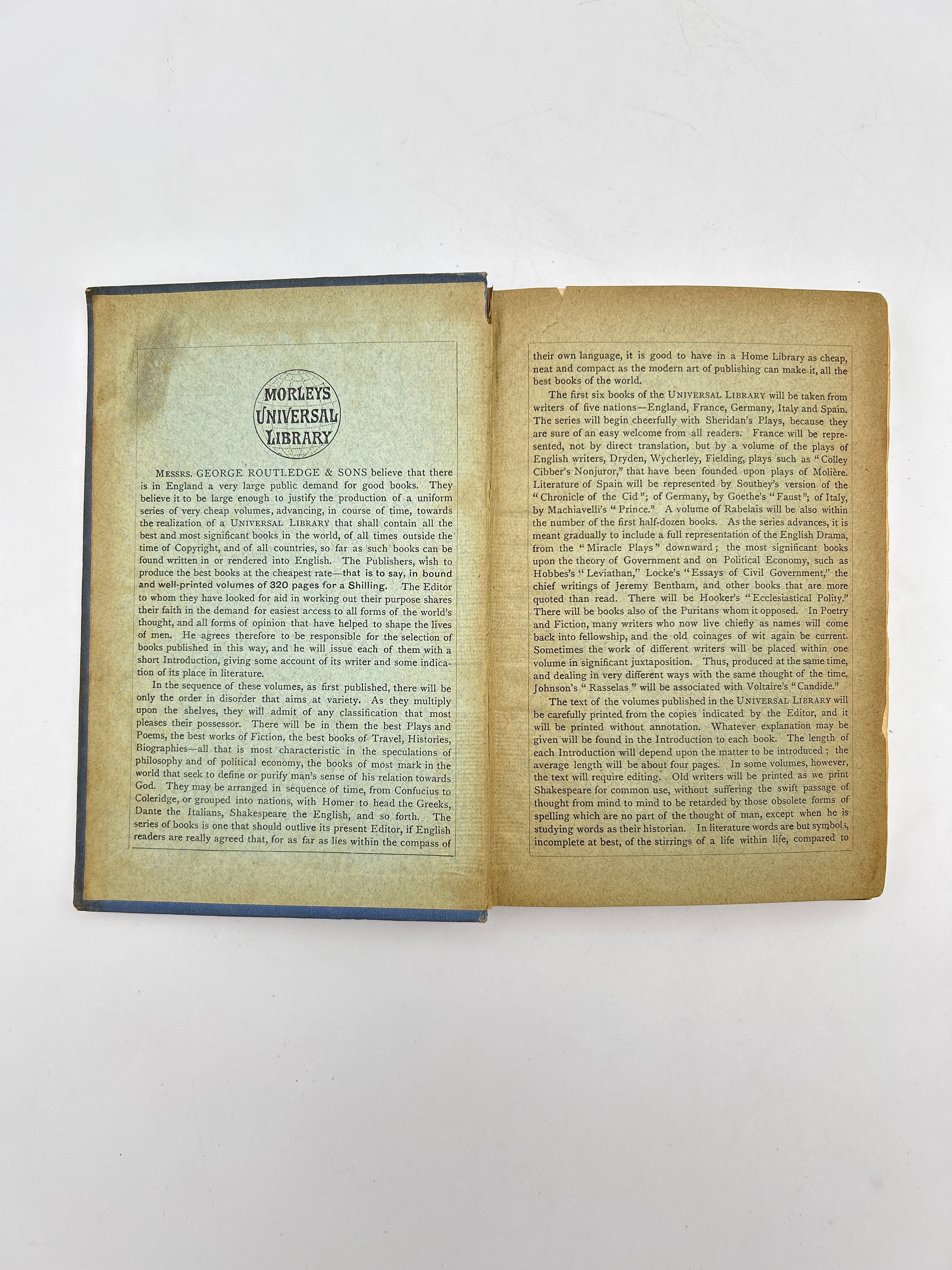 Blue cloth boards with black tooling over the upper board and black lettering on the upper board and spine. Morley’s Universal Library binding. Sun fading to the spine. Rubbing to the extremities. Bumped points. Fully intact. Very good condition overall.