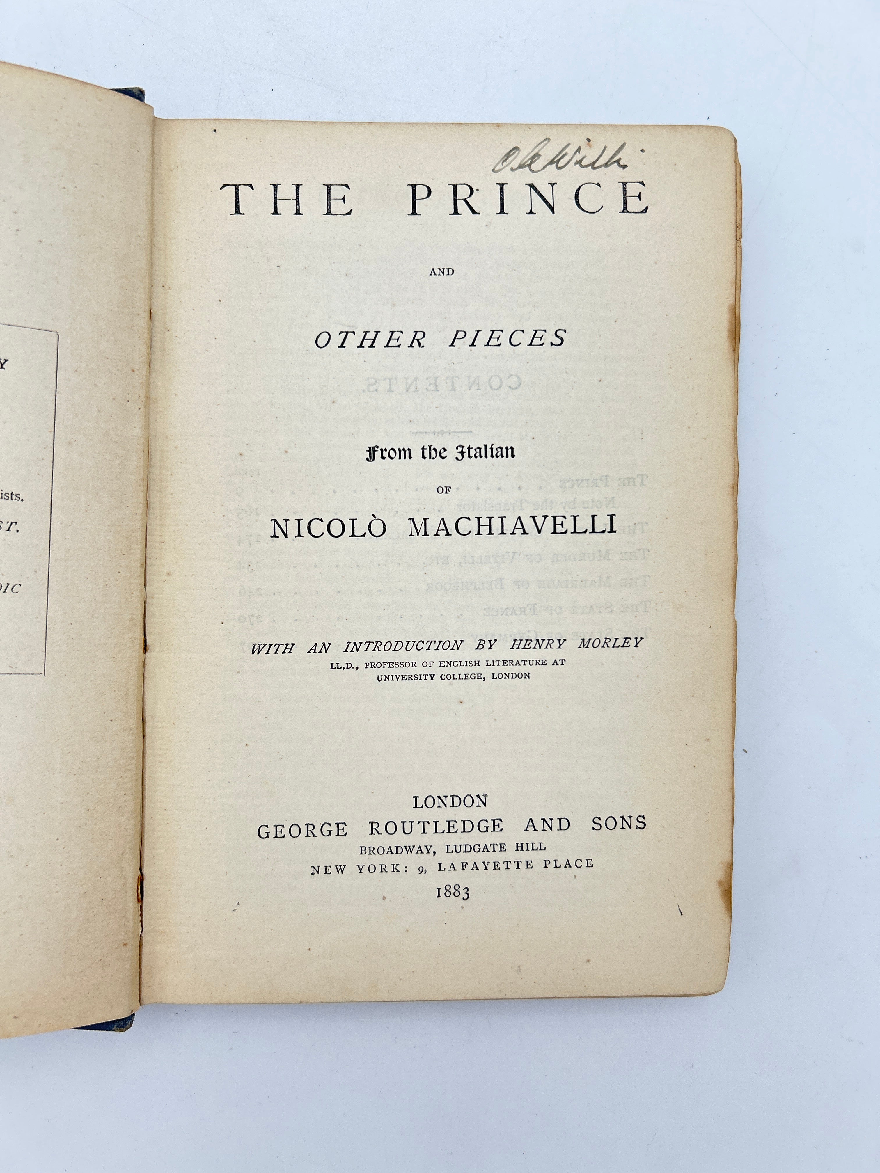 5W Nicolo Machiavelli. London; George Routledge and Sons, 1883.