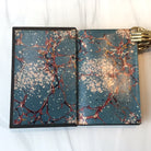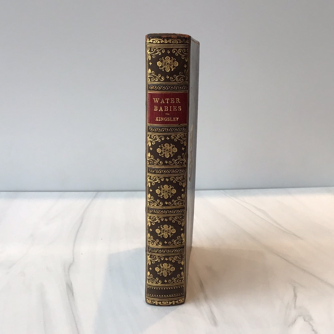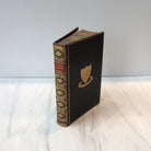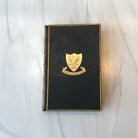 Black leather boards with gilt insignia on front and back boards. Red label on spine with gilt decorative elements and lettering. Marbled endpapers, embossed turn-ins, and Sunfading to the spine. Pristine condition.