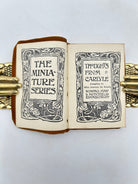 Miniature books grew especially popular in the late nineteenth and early twentieth centuries, when improvements in printing, paper quality, and typesetting made it possible to produce readable texts at very small sizes. Their appeal blended novelty, craftsmanship, and collectability: readers enjoyed the surprise of fully functional books small enough to fit in a pocket, while collectors prized the fine bindings, gilt lettering, and clever design challenges they represented. Miniature volumes were often given as gifts or souvenirs and frequently featured well-known classics, poetry, or religious texts, since familiar works lent themselves well to abbreviated or compact formats.