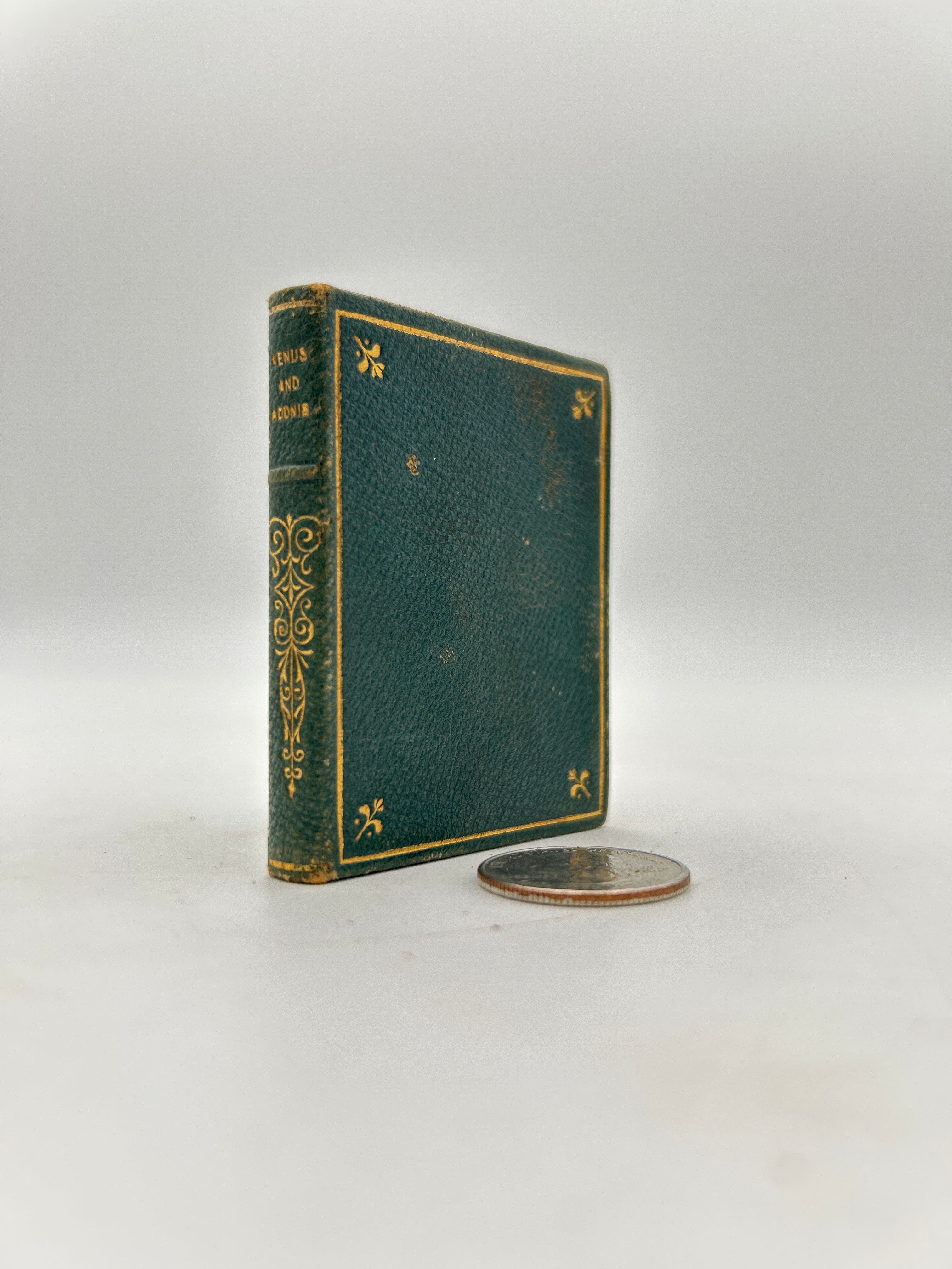 Miniature. Soft blue/green leather binding. Gilt lettering on spine with gilt borders dentelles and turn ins to boards. Final quarter of pages are blank with two pages featuring pencil sketches. Fine condition.