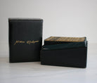 Six pocket size books in a box with cover, black leather volumes with gold embossing on spine and title of contents on front cover, beautiful condition