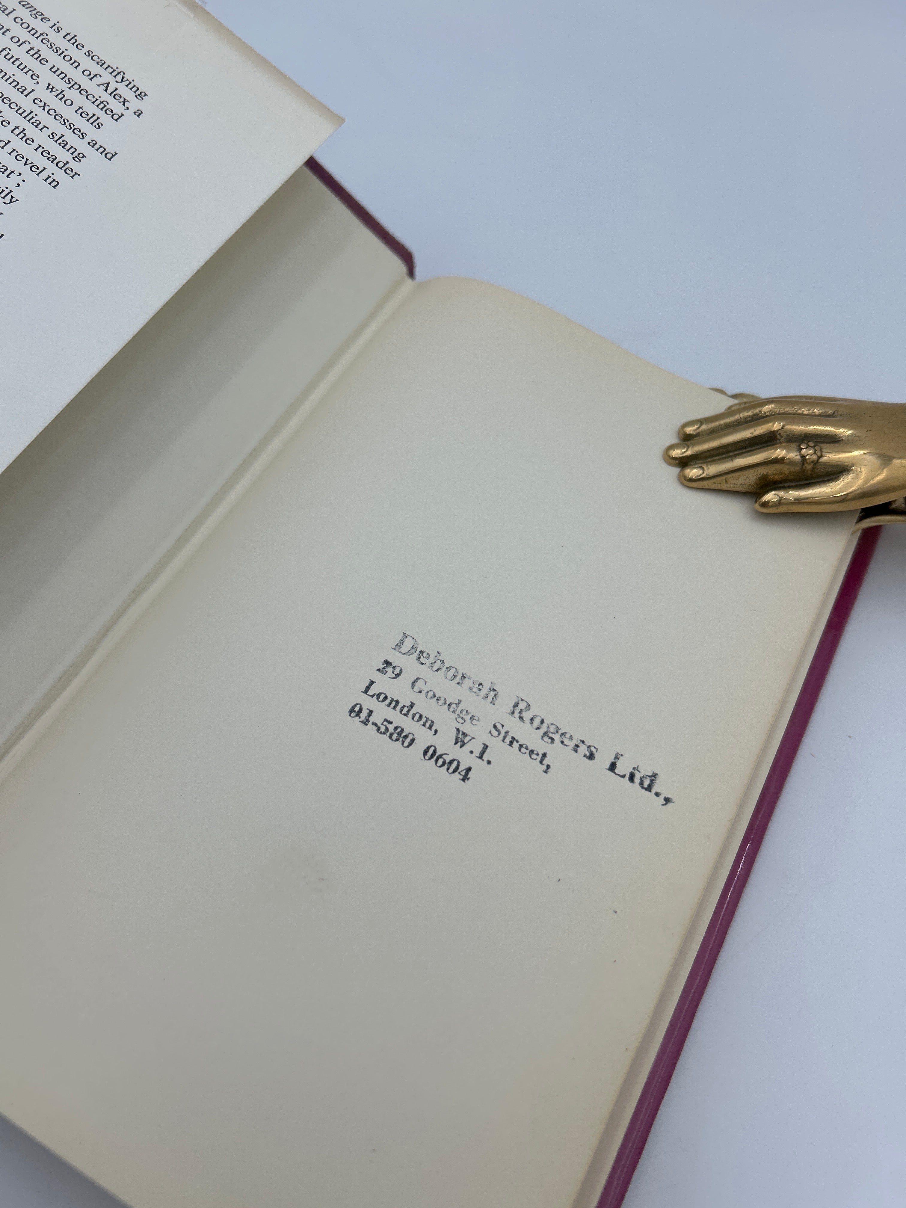 Publishers purple boards in pictorial dust jacket which is slightly edgeworn. Ink stamp on the front endpaper of ‘Deborah Roger’s Ltd.’ Deborah Roger’s had worked in publishing for literary agent Peter Jenson-Smith, whose authors included Eric Ambler, Gavin Maxwell, Ian Fleming, and Anthony Burgess. This is the agents file copy of the second edition. Anthony Burgess was one of her first clients when she launched her own business in 1967. Jacket unclimbed, which is unusual. Very good condition.