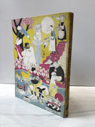 Hardback pink, blue, yellow, black, and white illustrated boards. Chipping to the upper spine and moderate wear to the spine hinges. Foxing to the edges and endpapers with minimal foxing to the interior pages. In great condition overall.
