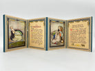 A very sweet concertina style children’s book with each fairytale panel accompanied by a charming illustrated panel. The panels depict the following fairytales: The Goose Girl, Red Riding Hood, the Beautiful Princess, Beauty and the Beast, the Sleeping Beauty, the Magic Mirror, Cinderella, and Snow White and Rose Red. As a children’s illustrator Jennie Harbor focused on nursery rhymes and fairytales and his best known as the illustrator of a number of Andrew Lang’s ferry books.