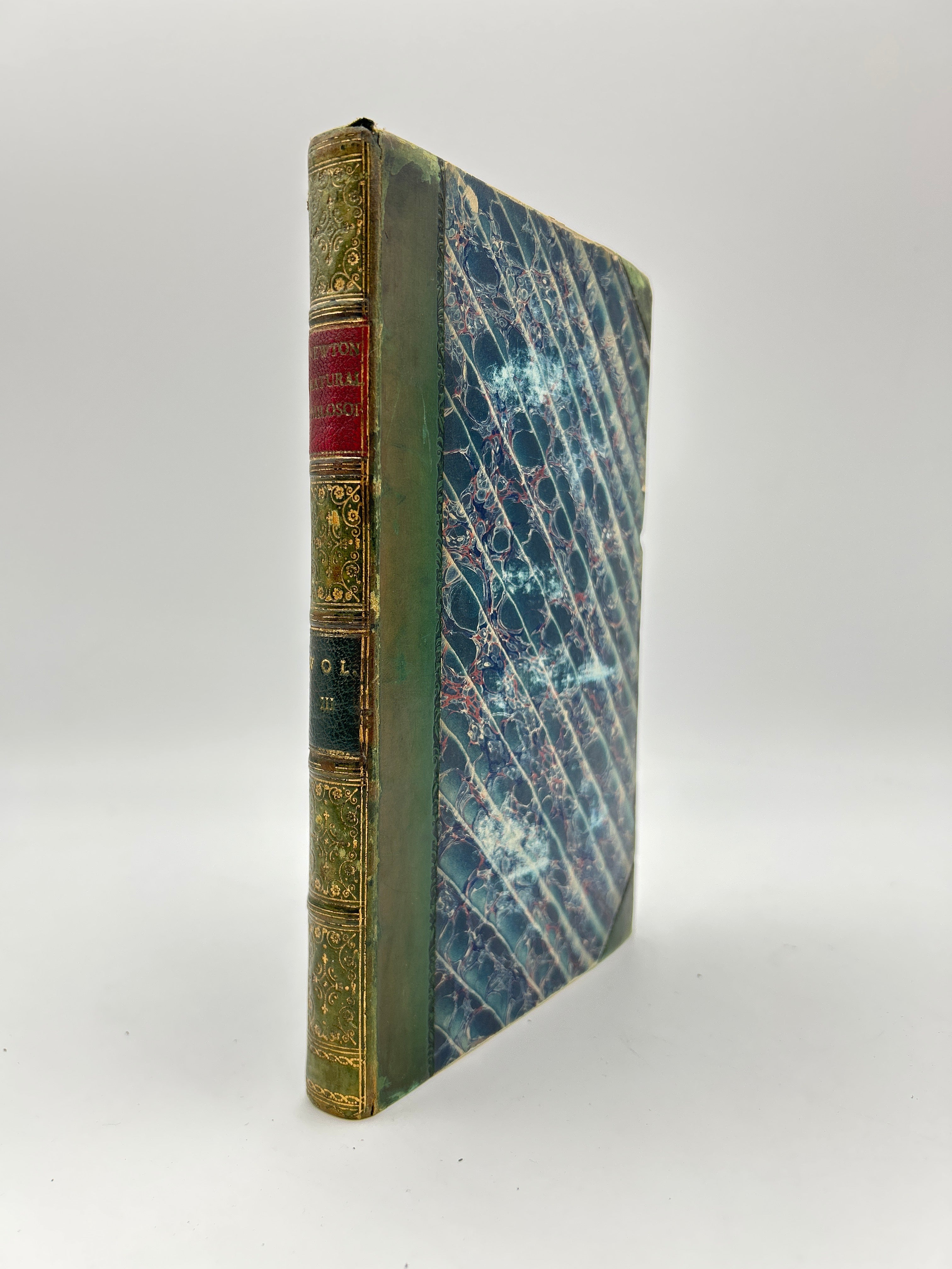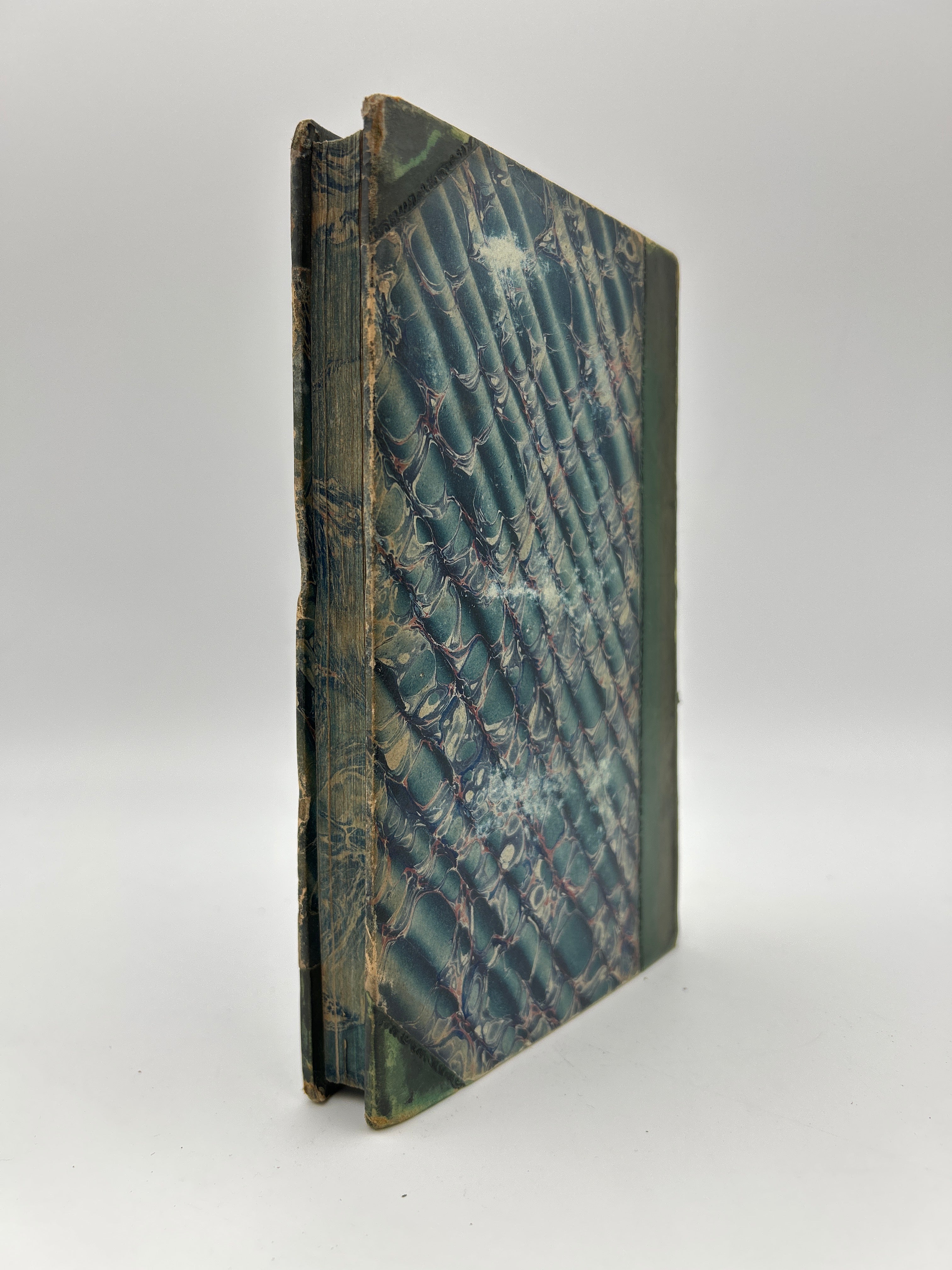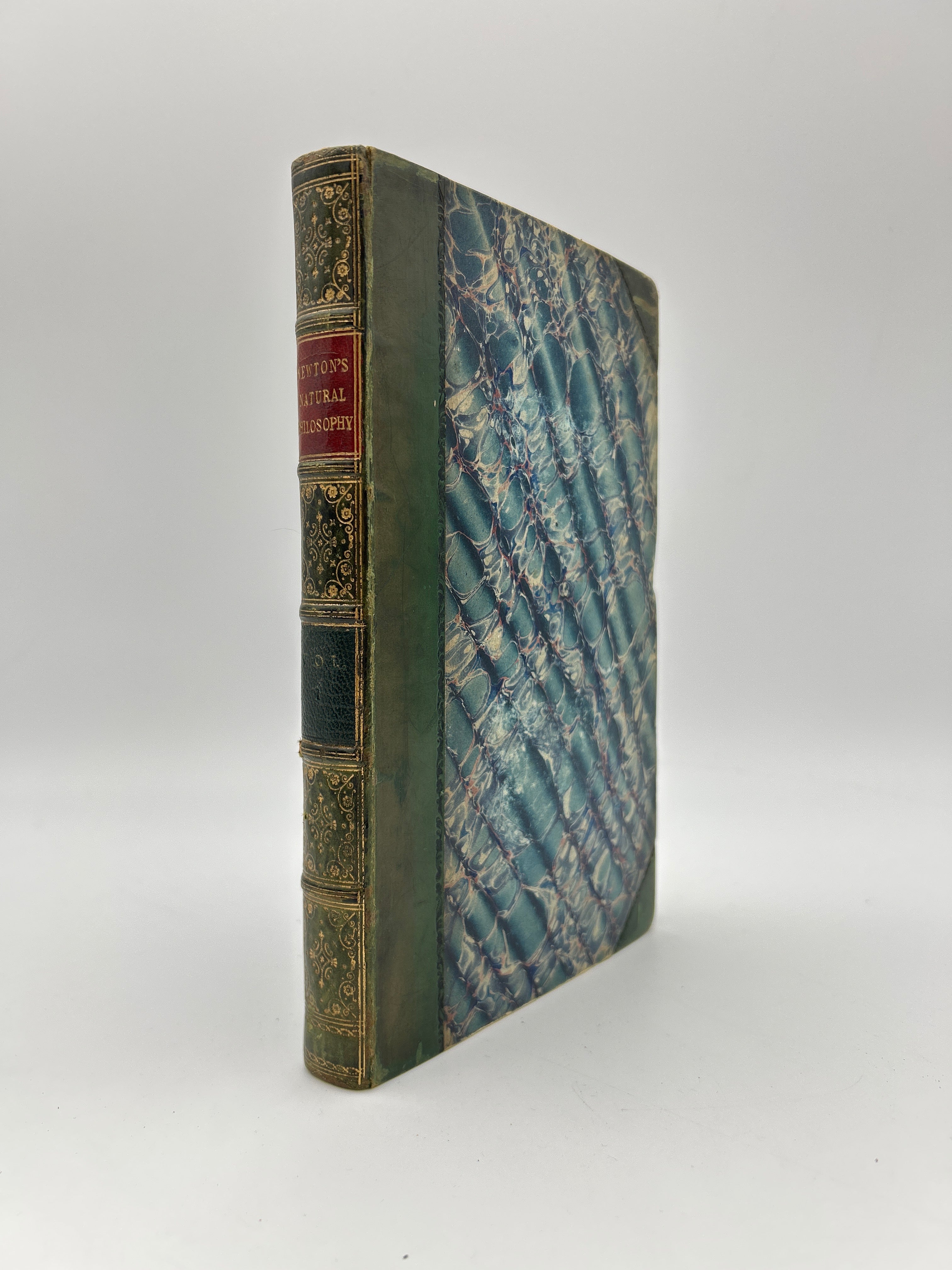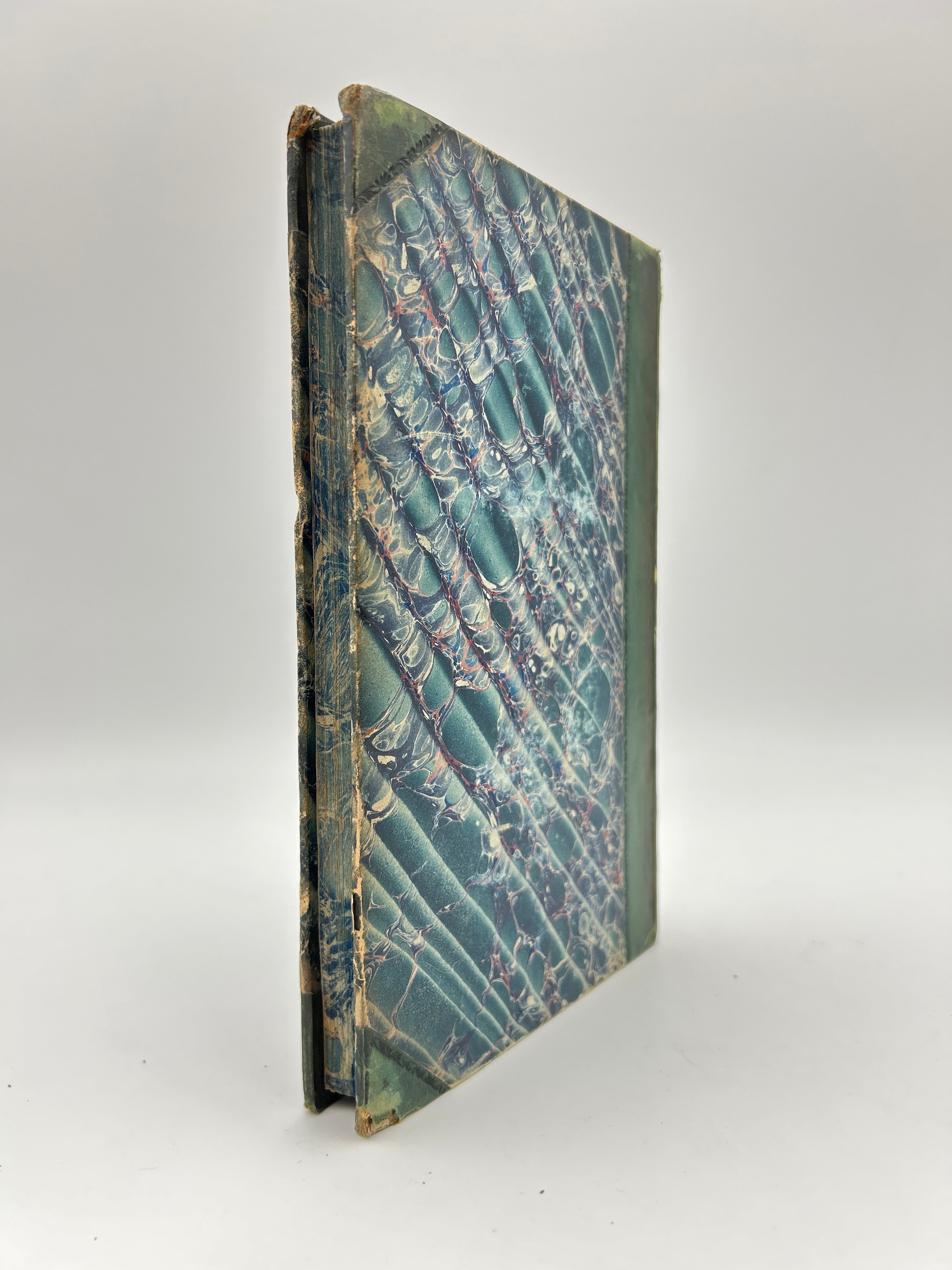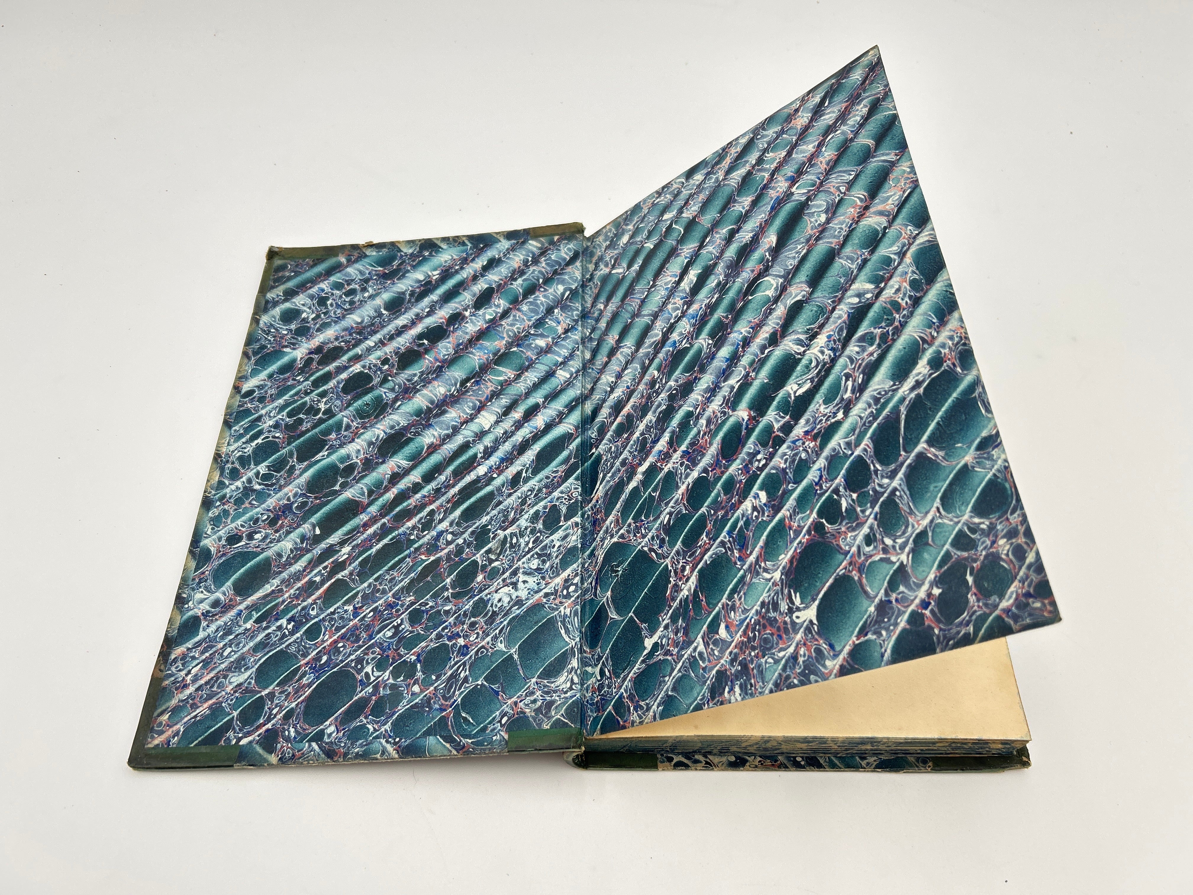 Blue marbled boards with green leather spine and corners. Five raised bands with gilt embossed detailing and gilt lettering on the spine. Marbled endpapers and all edges. All three volumes housed in a green slipcase. Several fold-out pages throughout. Some fading to the marbled boards. Fading to the gilt lettering on Vol. 1. Rubbing to the extremities and bumped edges down to the boards beneath the leather. A small notch halfway down the right edge of each upper board. Fully intact. Fine condition overall.