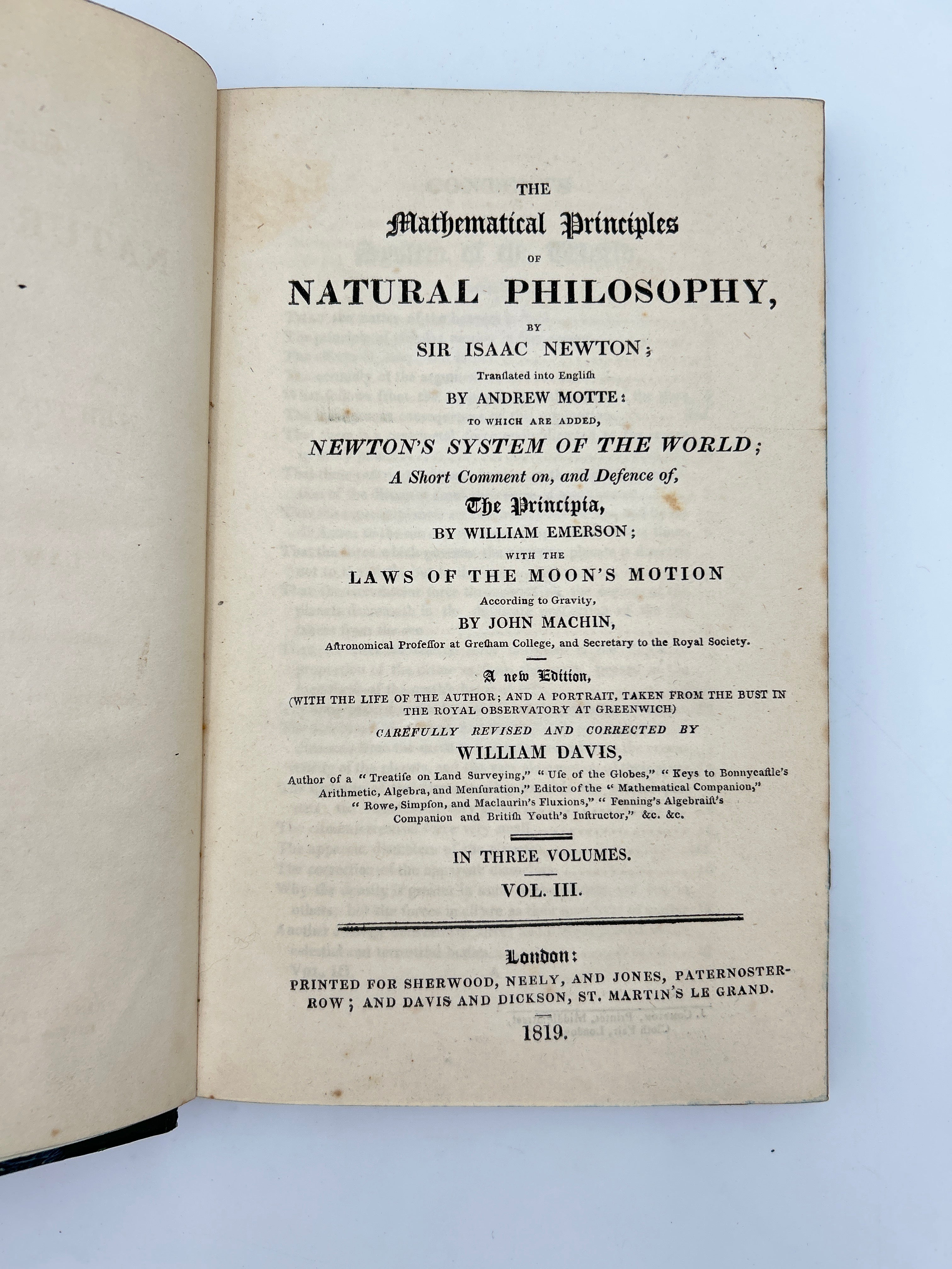 5RR Sir Isaac Newton, translated by Andrew Motte, London, 1819. In three volumes.