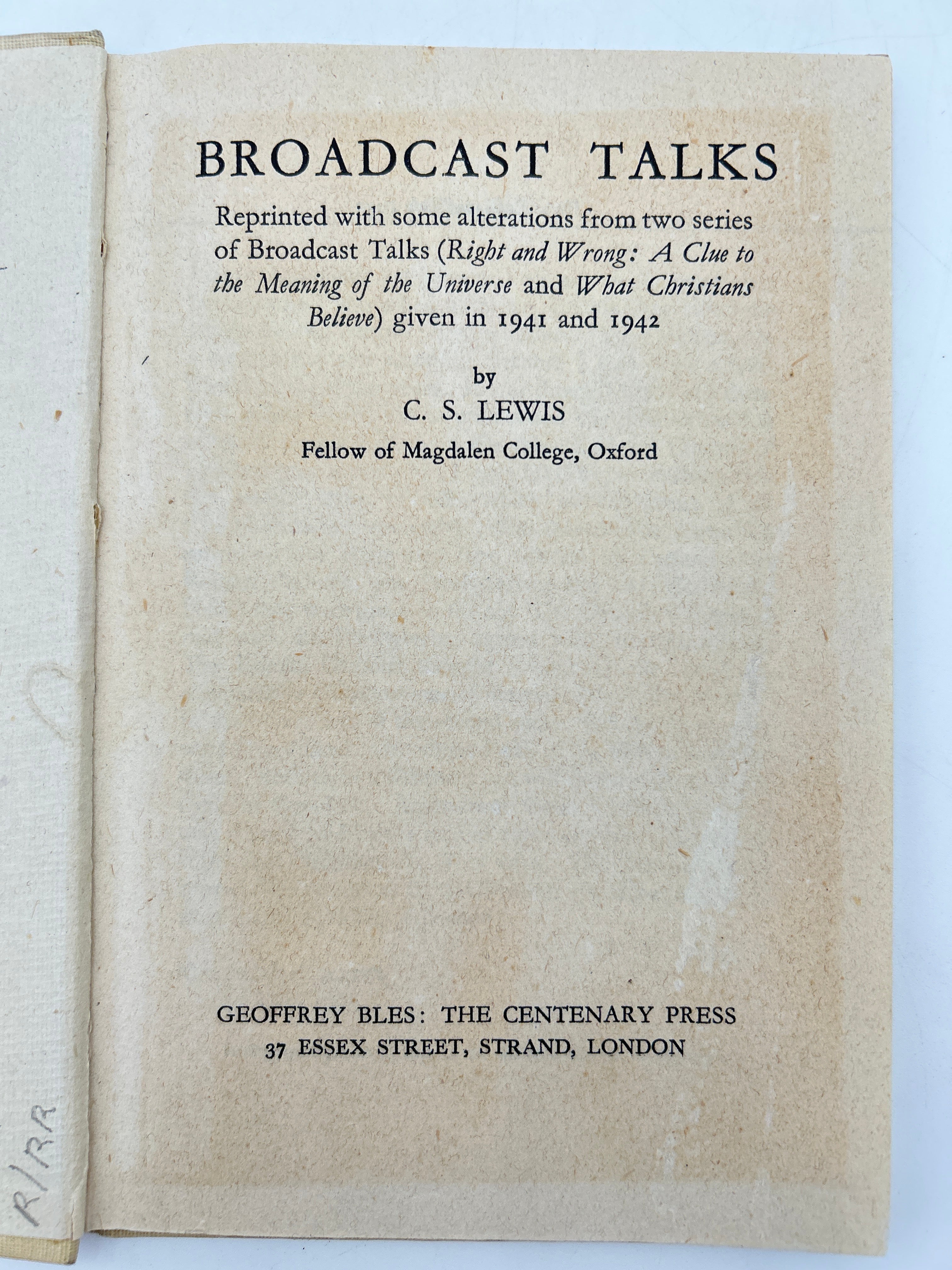 5W C. S. Lewis. Geoffrey Bles: The Centenary Press. 1942, First Edition.