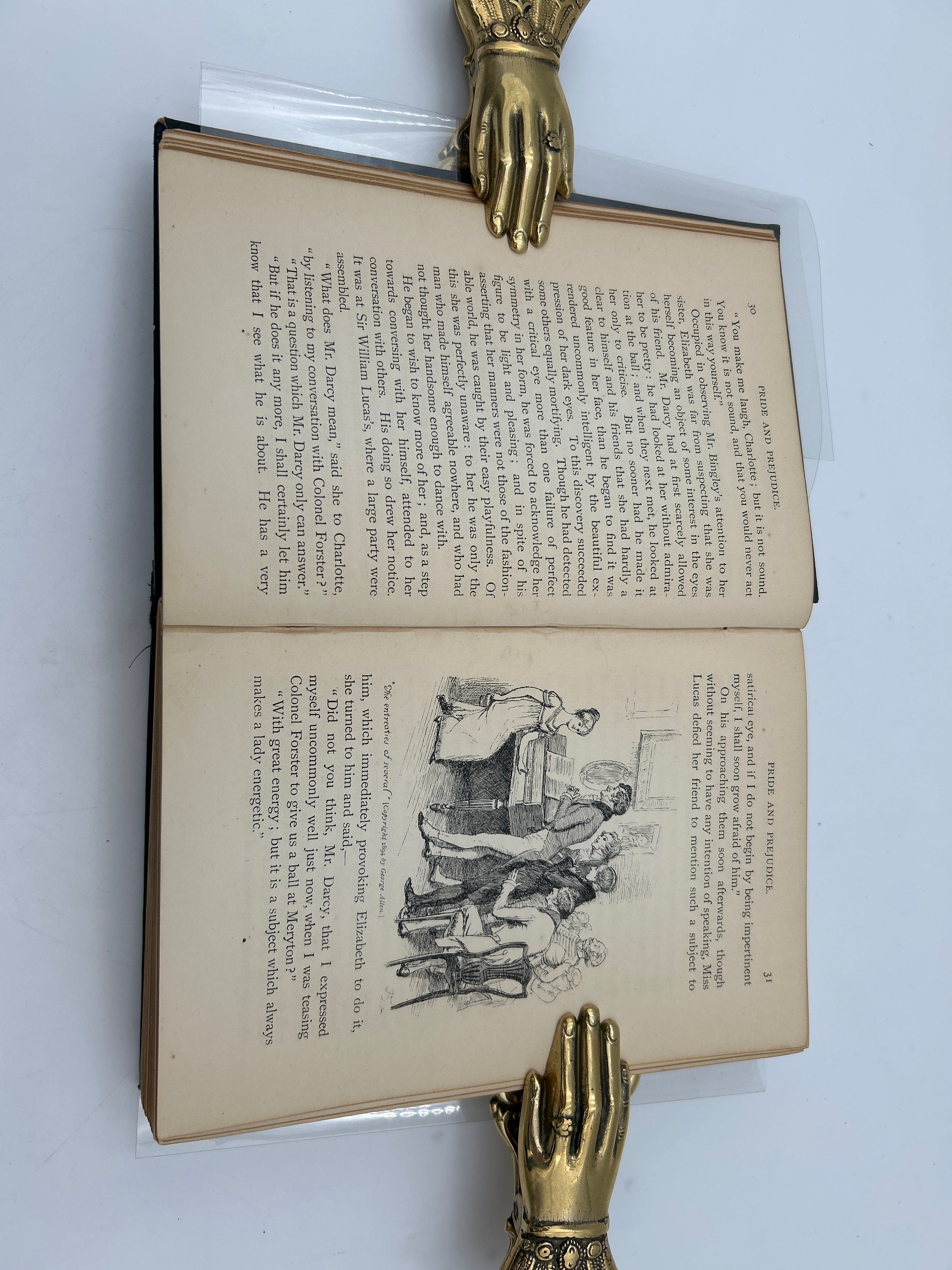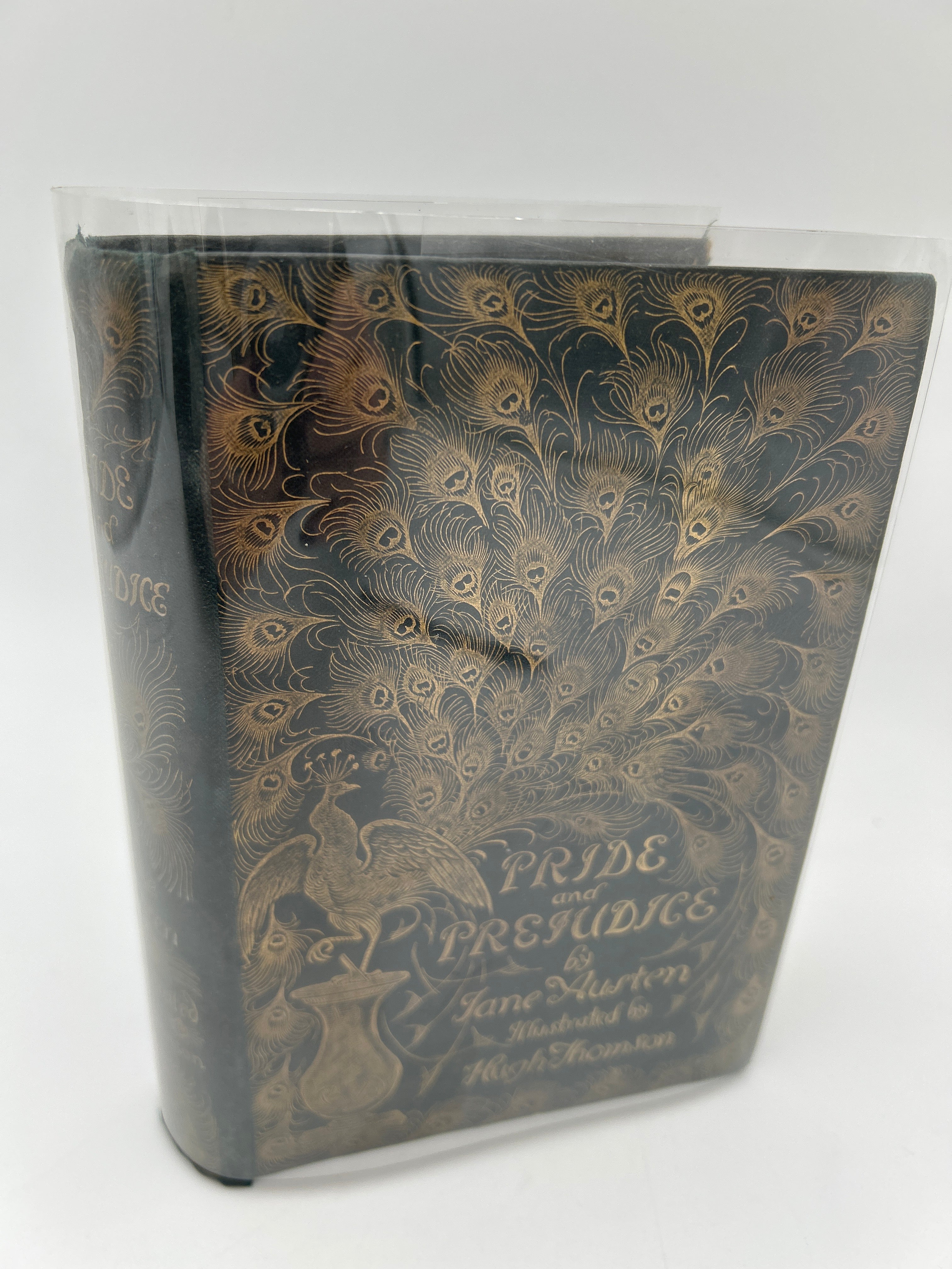 The 1894 Peacock Edition of Pride and Prejudice, written by Jane Austen and published by George Allen, is one of the most celebrated and visually striking printings of the novel. Although the story was originally published in 1813, this special edition became famous for Hugh Thomson’s exquisite illustrations and its lavish cover design: a shimmering gilt peacock perched on an ornate vase, spreading its tail across the deep green cloth binding. Thomson’s detailed drawings capture the wit, charm, and social nuance of Austen’s world, enhancing the experience of Elizabeth Bennet and Mr. Darcy’s timeless romance. Today, the Peacock Edition is regarded as a masterpiece of Victorian book design and is highly sought after by collectors for its artistic craftsmanship and enduring literary significance.
