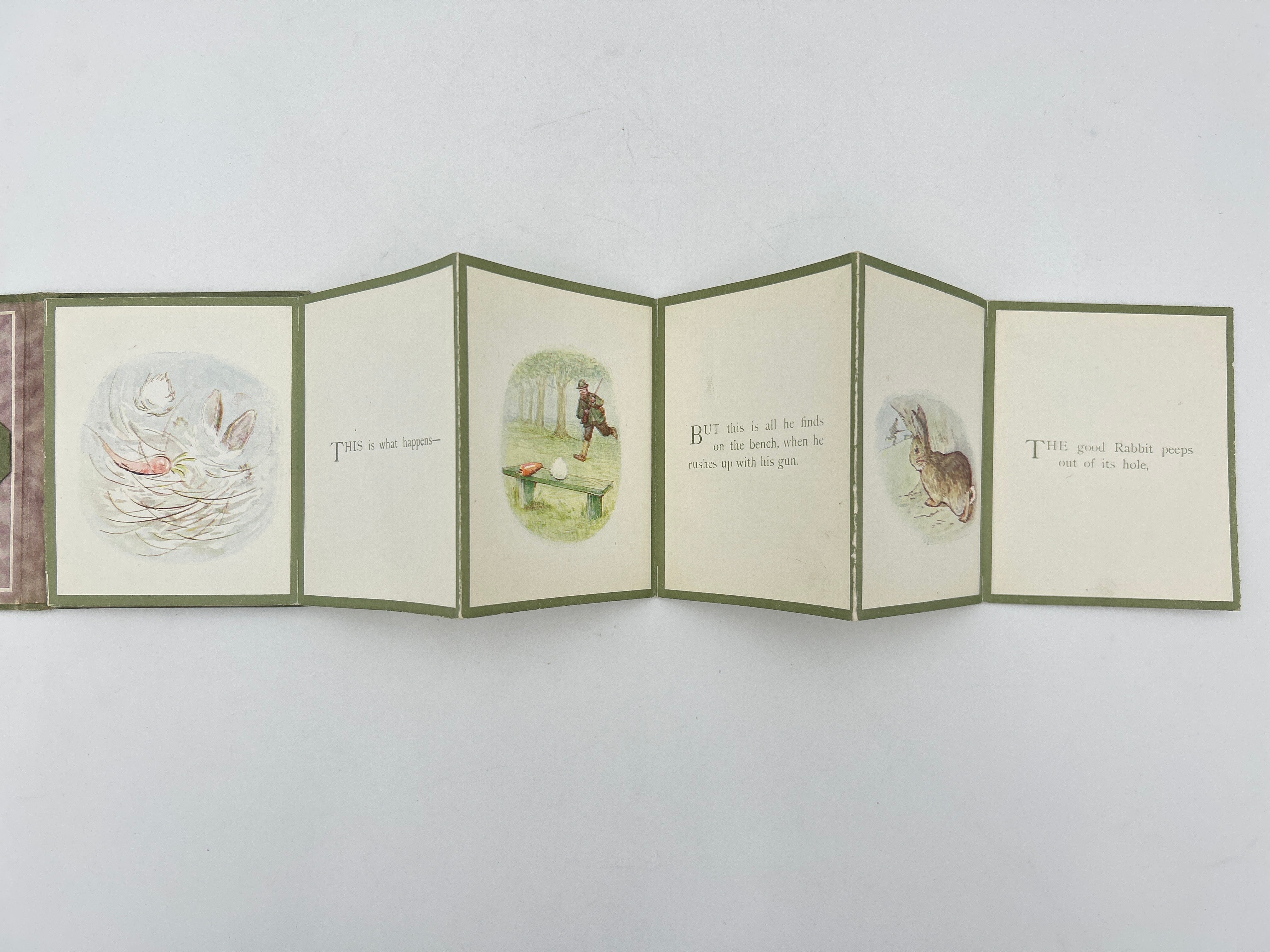 While the panorama format was innovative, it proved fragile and impractical—easily torn by small hands and difficult to refold neatly. Due to this, it was soon reissued in the traditional small book format that matched Potter’s other “little books.” Nonetheless, the original accordion version is a fascinating example of early 20th-century children’s publishing and remains a collector's item today.