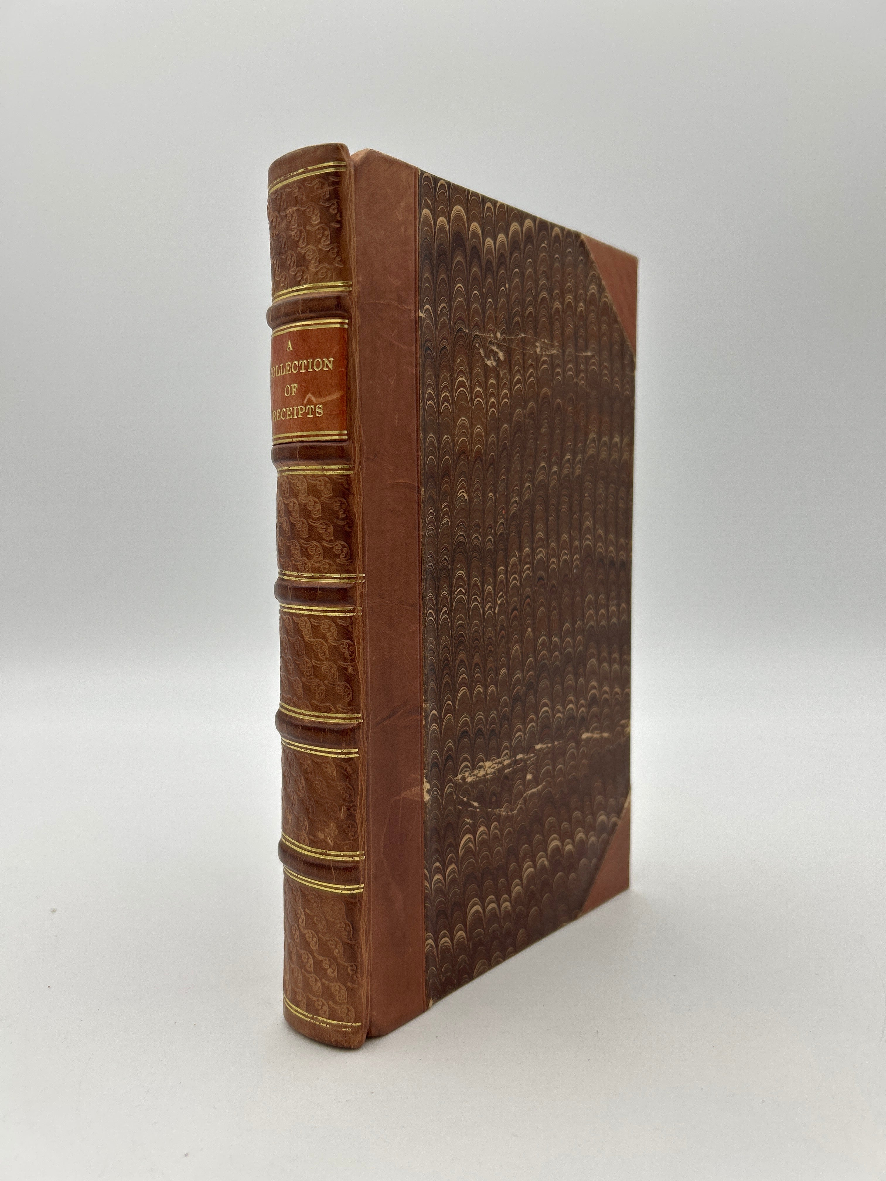 Rebound collection of recipes. Leather 3/4 binding with marbled covers.