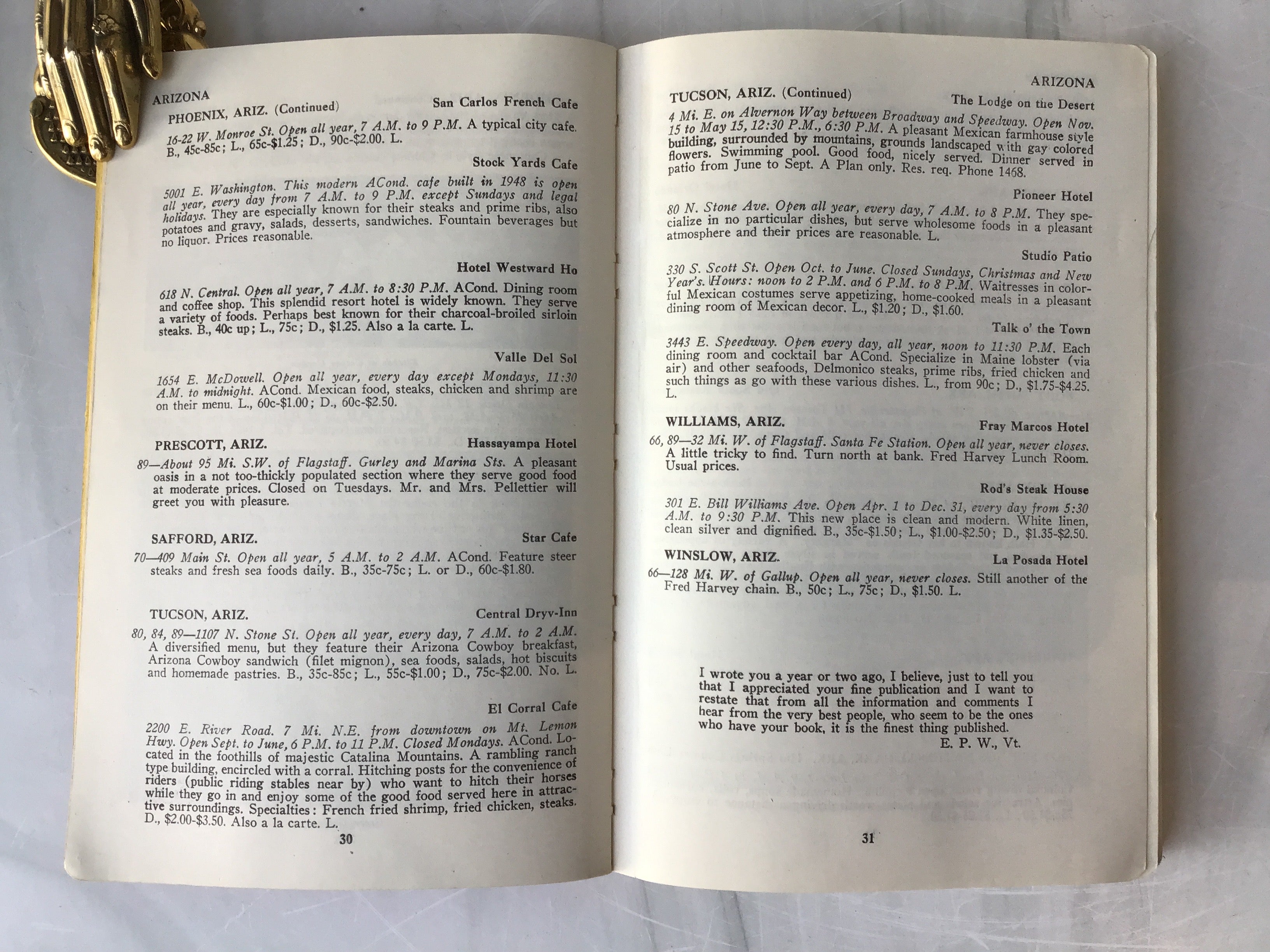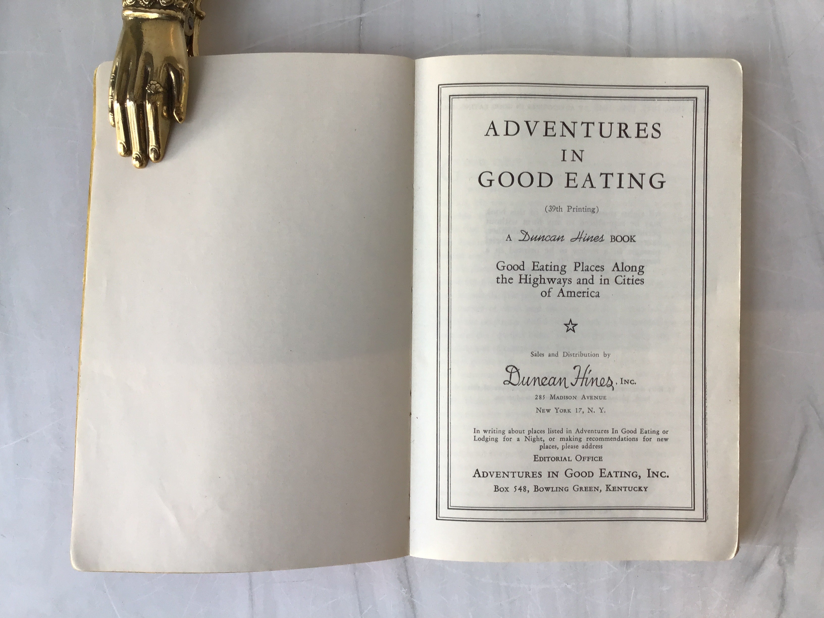 Adventures in Good Eating is a travel and dining guide by Duncan Hines, first published in 1935. Hines, originally a traveling salesman, compiled this book to share his recommendations on where to find quality food across America. It lists restaurants known for good food and service, organized by state, and became a trusted resource for travelers before the era of chain restaurants and fast food. Hines later expanded his brand to include packaged foods, building on the reputation for quality established by this guide.