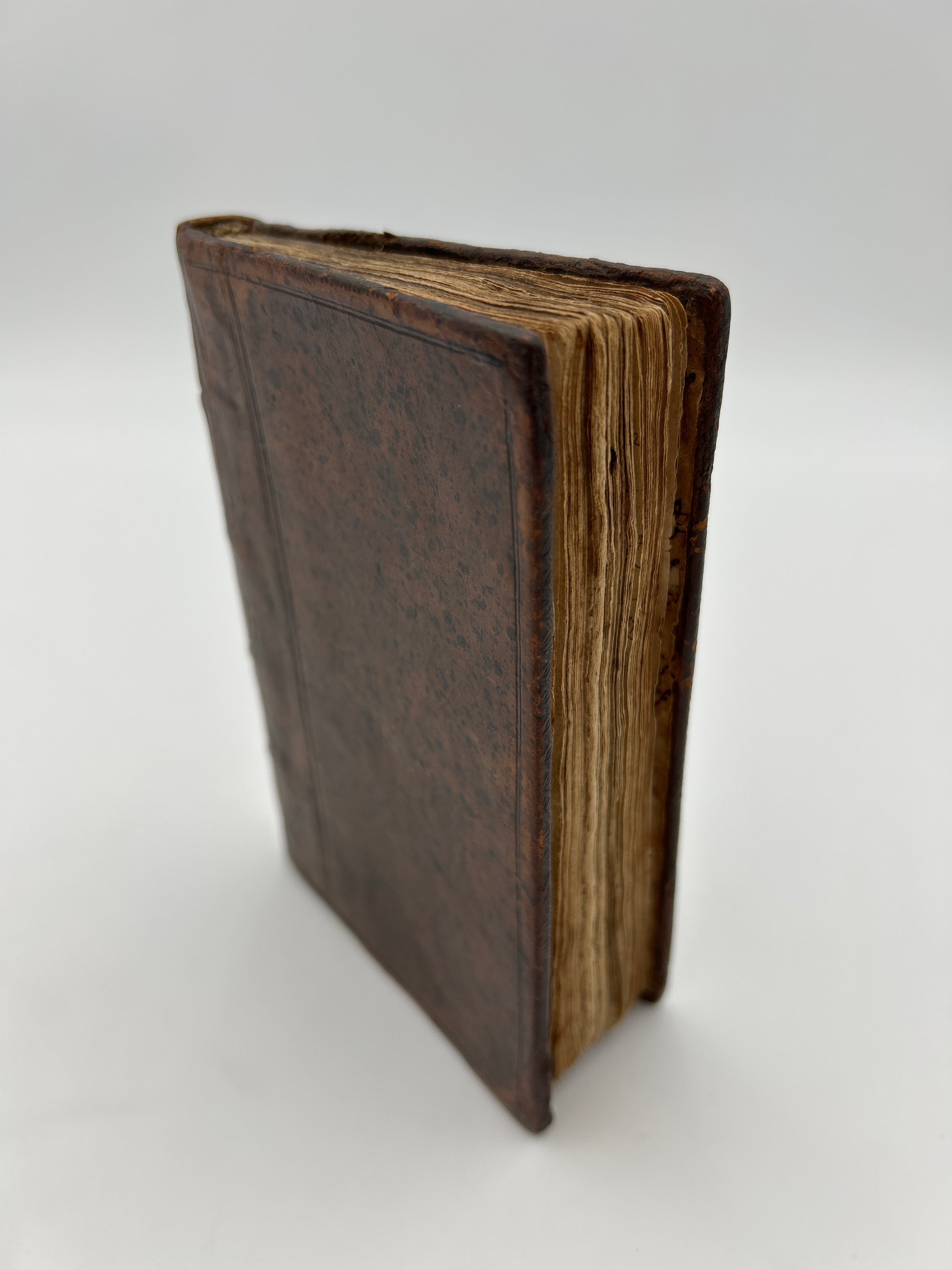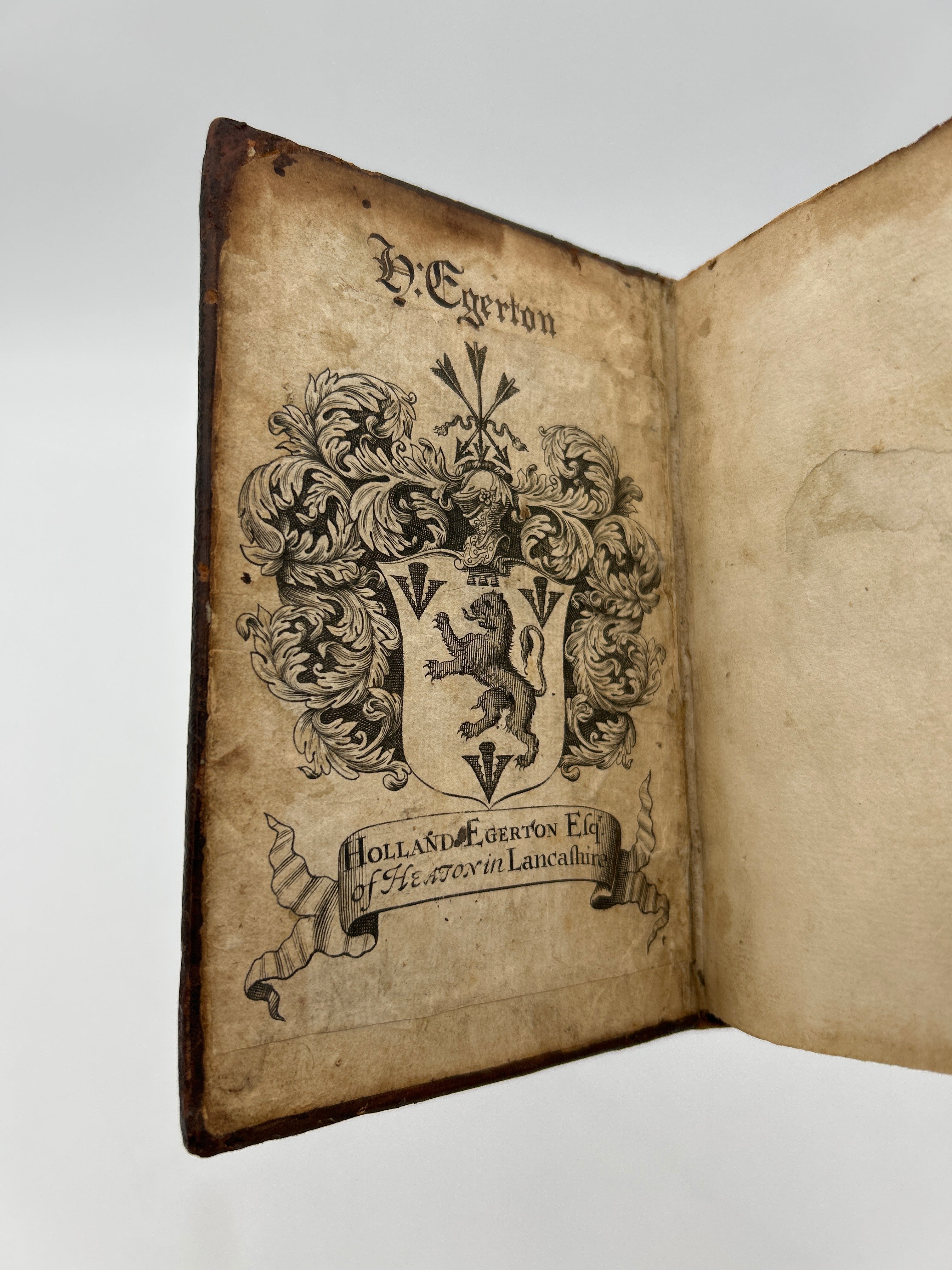 Leather bound octavo book with rebacked spine with four raised bands. Contains manuscript additions and hand writing throughout. Fold out leaf included before A Catalogue of the Baronets of this Kingdom of England starting on page 79. General browning and foxing to interior. Good condition.