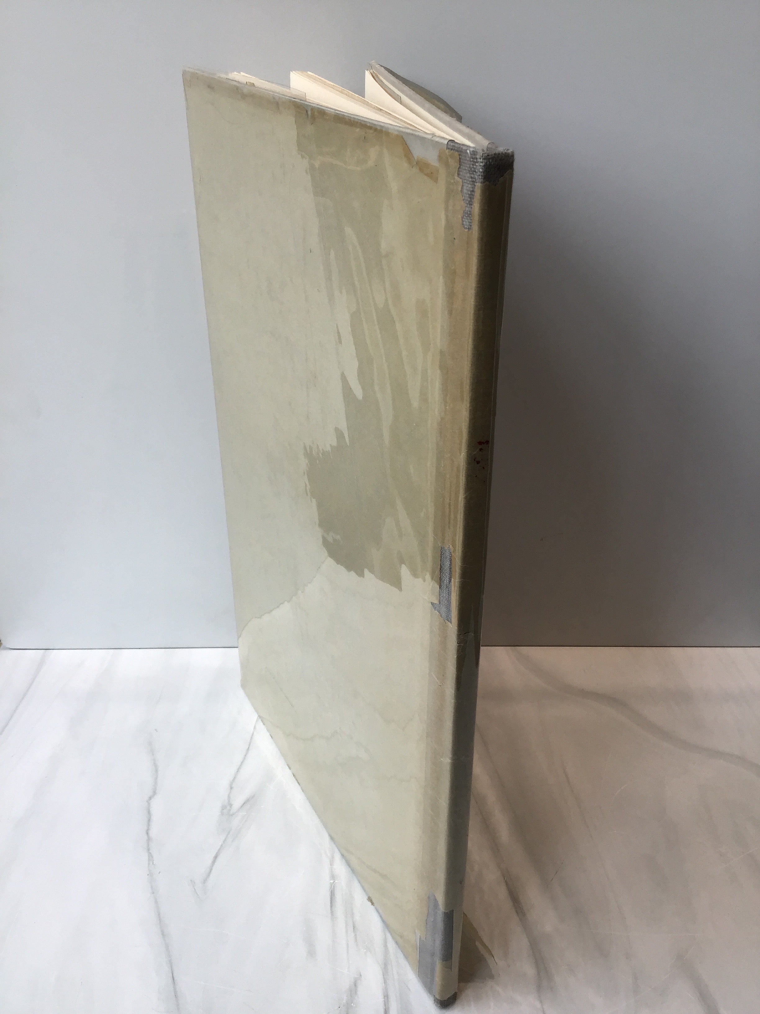 11x16 gray hardbound with tissue and clear plastic as a protector, fully intact, book in very fine condition with some tearing on the tissue and clear plastic cover only.