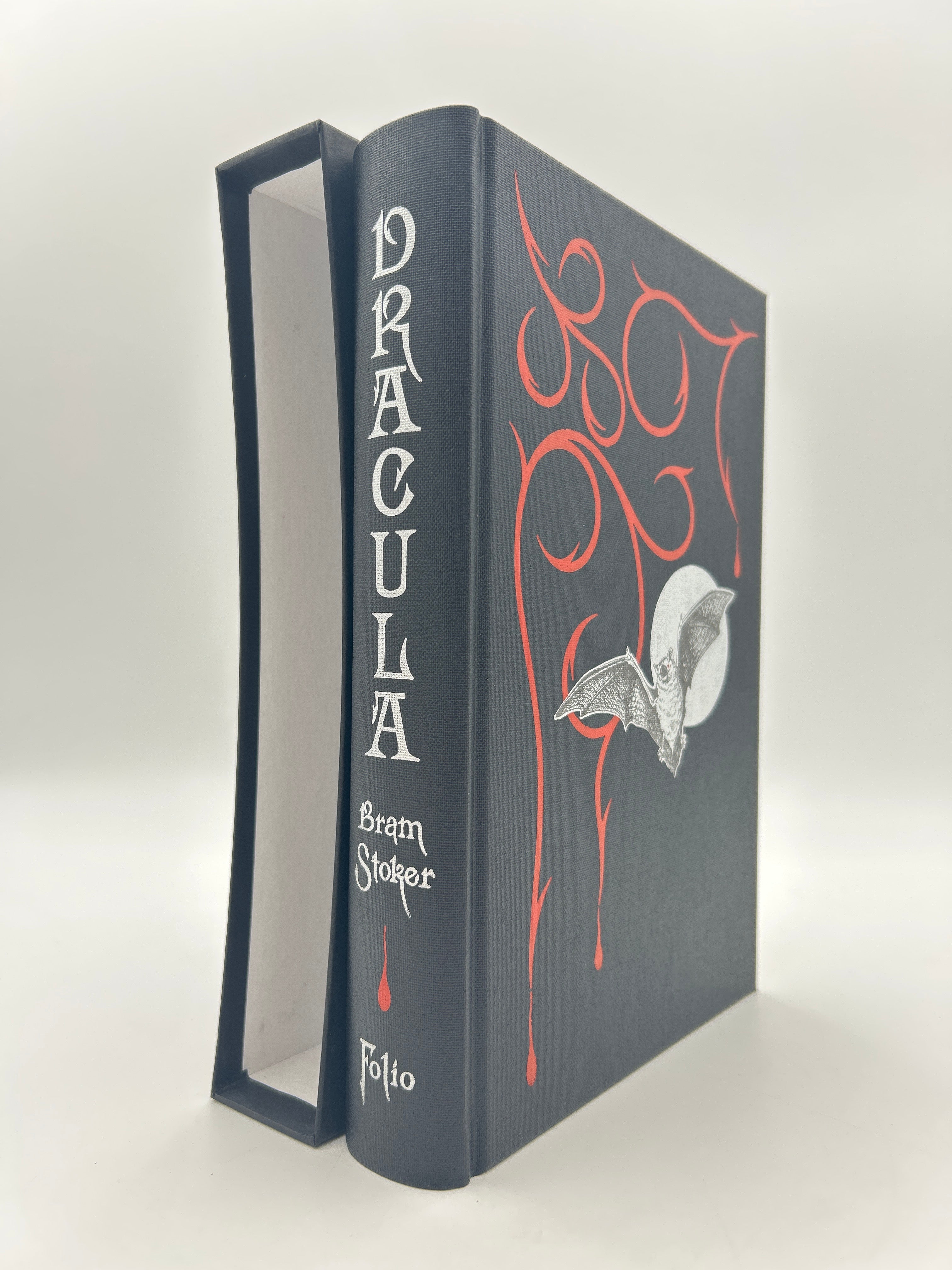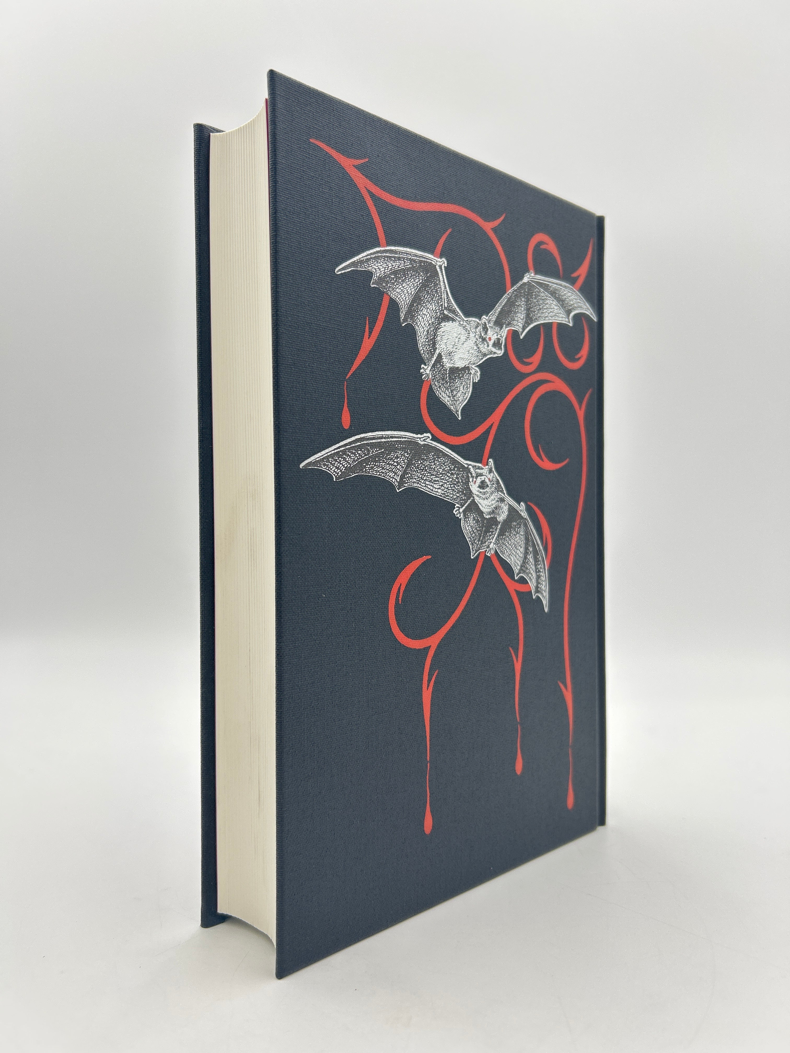 Black cloth binding with red designs and silver bat and moon on upper board. Silver lettering on spine with red drop of blood. Illustrated throughout. Black slipcase. Fine condition.