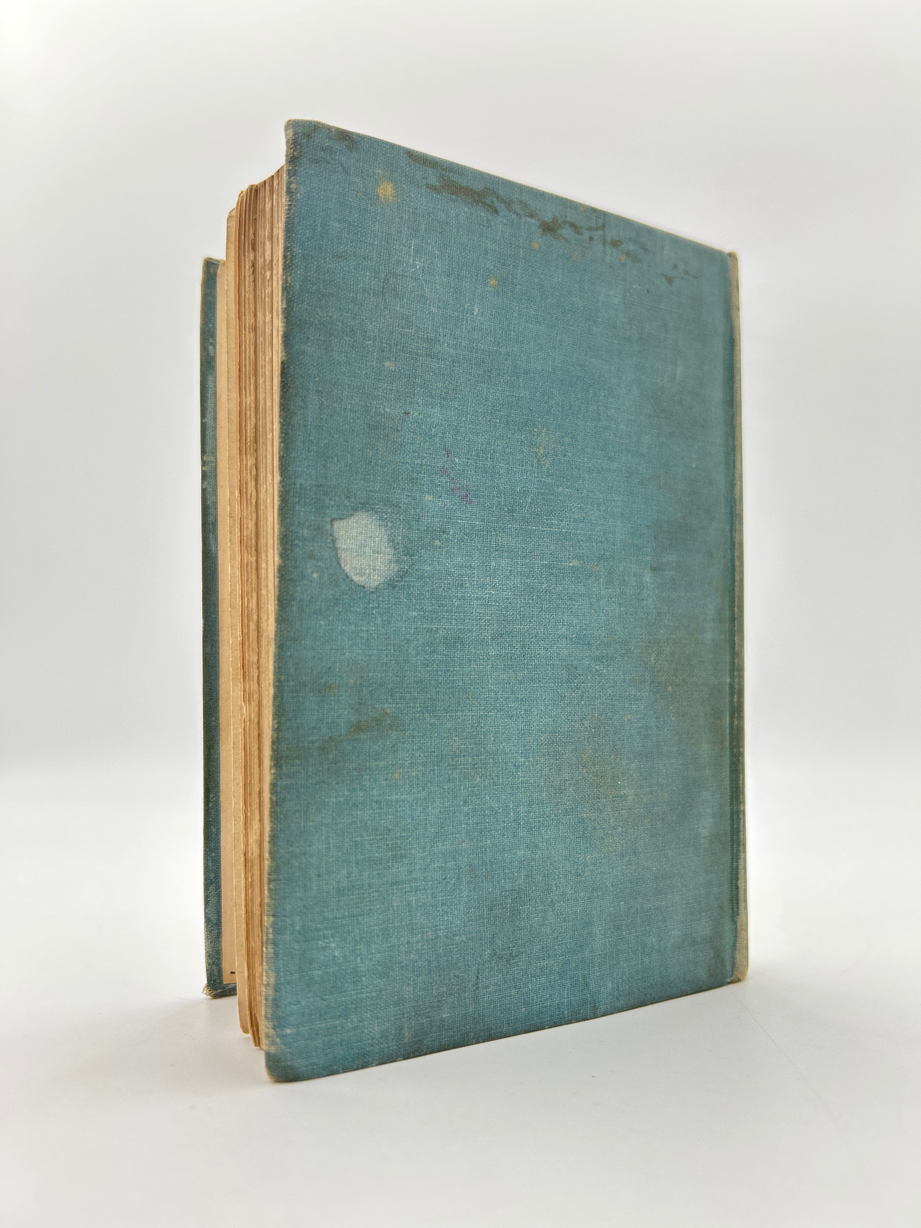 Blue cloth binding with stylistic floral design on upper board in green and pink with gilt designs throughout. General discoloration to binding and foxing to lower board. Photographic frontispiece. Minimal fraying to head and foot of spine. Corners minimally bumped. No markings. Very good condition overall.