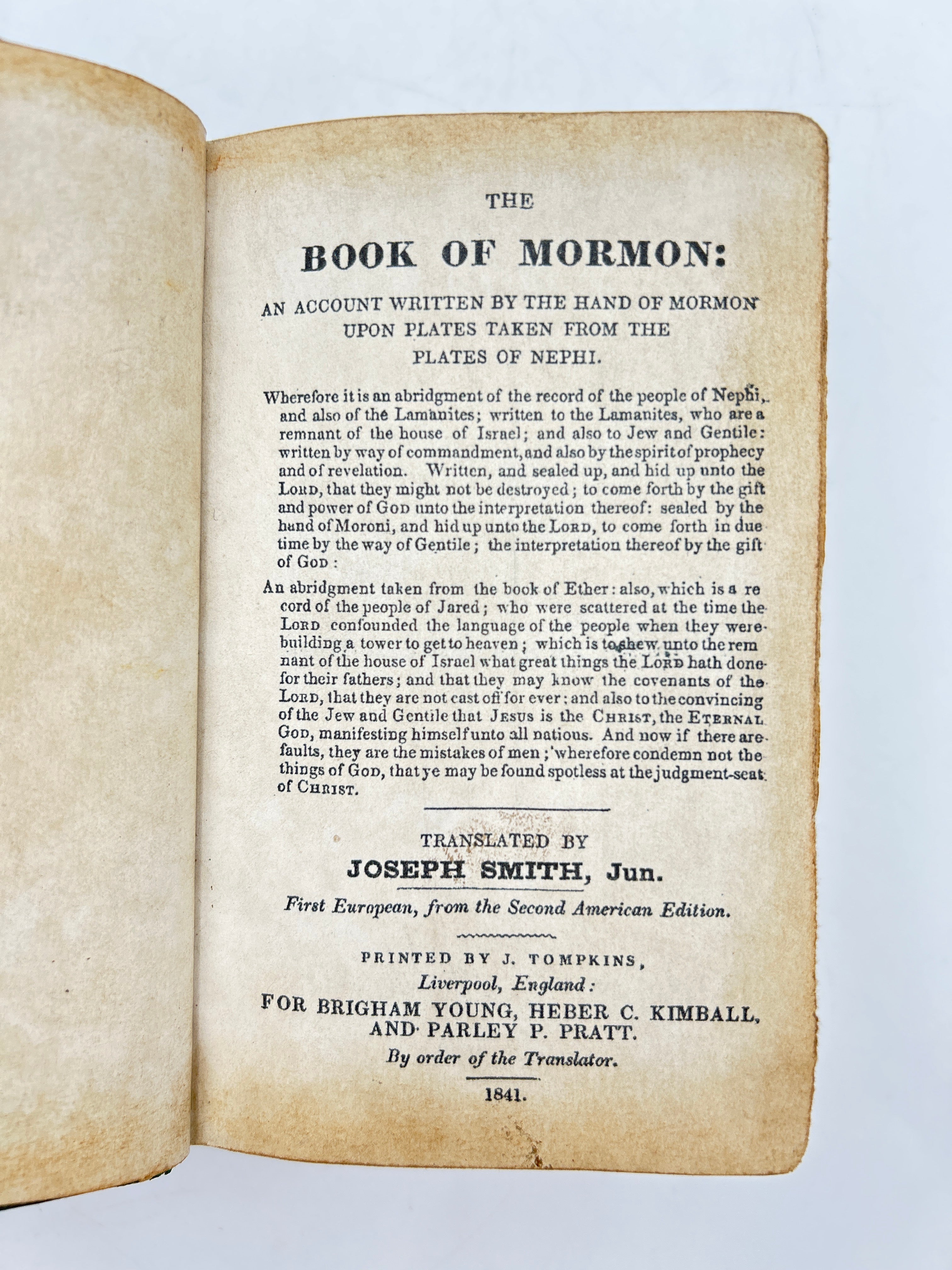 The second edition of the Book of Mormon, printed in Liverpool in 1841 was the first edition of the Book of Mormon published outside the United States and marked a major step in the global expansion of the church. Overseen by Apostle Brigham Young and published by John Taylor and Parley P. Pratt while serving as missionaries in England, this edition made the book accessible to the rapidly growing number of British converts during a time of intense missionary activity in the British Isles.