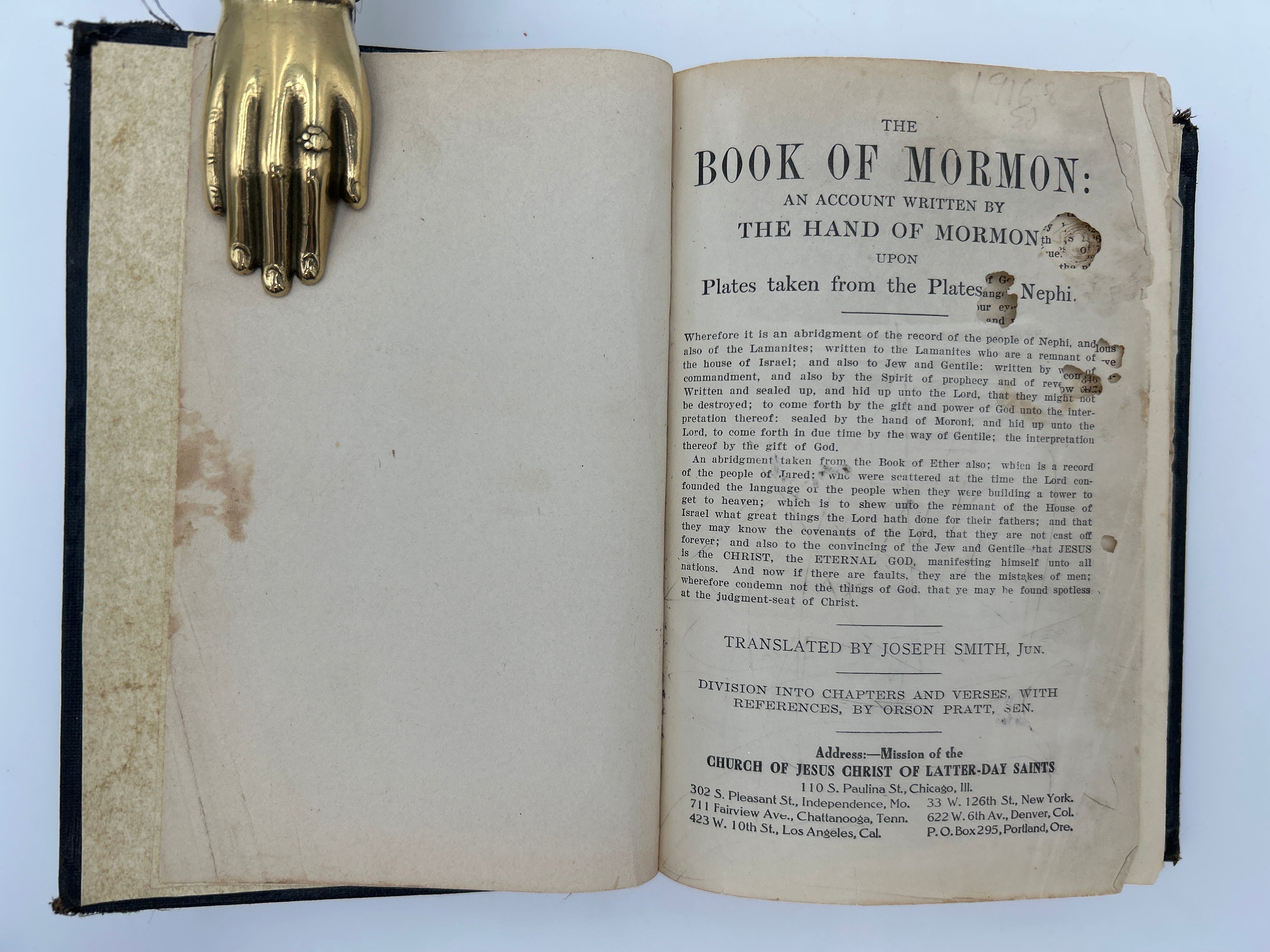 The Book of Mormon, first published in 1830, is a foundational text of the Latter-day Saint movement. It recounts religious narratives of ancient civilizations in the Americas, emphasizing Christ's visit to the continent following his resurrection. The 1916 edition, like subsequent editions, preserves the text's teachings and stories, centralizing faith, redemption, and the restoration of Christ's gospel as pivotal themes. Its enduring influence extends beyond religious circles, shaping cultural and theological discourse globally.