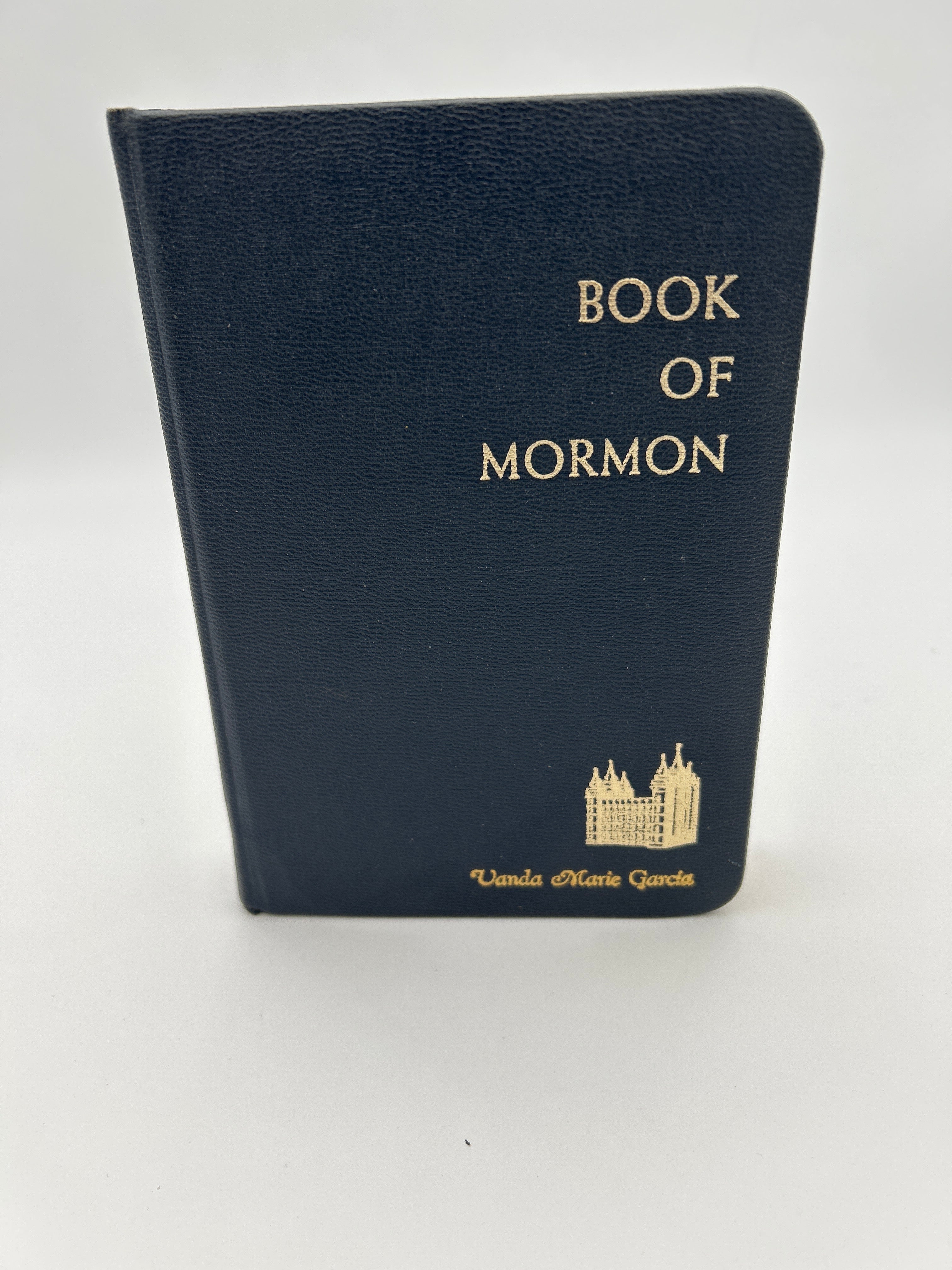 Black hardback with silver tooling on front and spine, name Vanda Marie Garica on front cover, very fine condition.